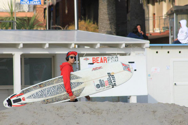 Grazie alla grandissima organizzazione e all’ospitalità della famiglia Colombini il giorno 19 Novembre 2011 verso l’ora di pranzo iniziano le prime batterie del Bear Pro World Longboard Title 2011 ad Andora; io gareggiavo nella quinta batteria contro l’hawaiiano Duane Desoto; dopo un buon riscaldamento ed un po’ di incitamento da parte di molte persone presenti all’evento finalmente entro in acqua con il sorriso stampato e la carica giusta per affrontare un campione di quel calibro.