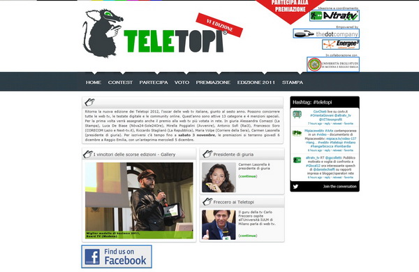 Volete darci una mano? Dal 2012 verrà eletta anche la web tv più “Social”. Significa che chi si becca più voti online a questo link http://www.teletopi.tv/voto.php, vince anche questo premio. Che aspettate a votarci?!