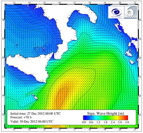 Venerdì 28: mare poco mosso con vento moderato off-shore (n-o), verso sera venti molto forti da n-o in arrivo su alta Calabria