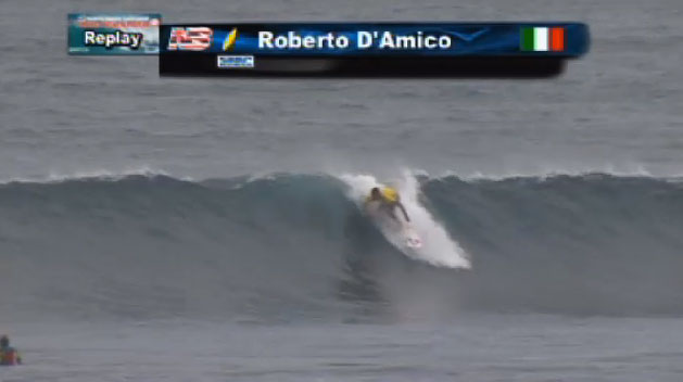 Entrambi sono passati dapprima dal round dei 32 al round dei quarti, con D’Amico che negli ultlimi della heat è risalito al secondo posto grazie a un’onda surfata con consistenza e che gli ha permesso di scavalcare l’americano Trevor Thornton.