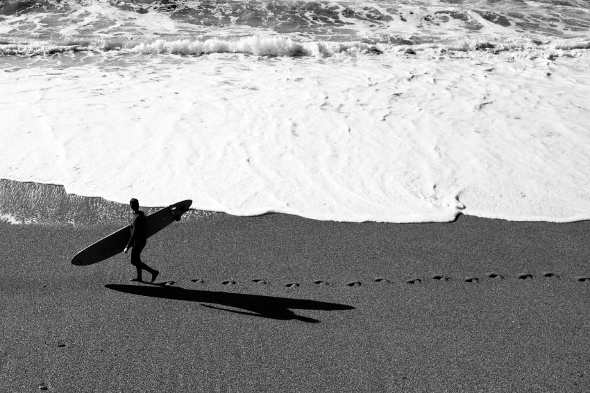 Ti piace trasformare i tuoi day trip in una sorta di progetto fotografico che ne racconta lo svolgimento dall’alba al tramonto. Come hai sviluppato l’argomento surf?