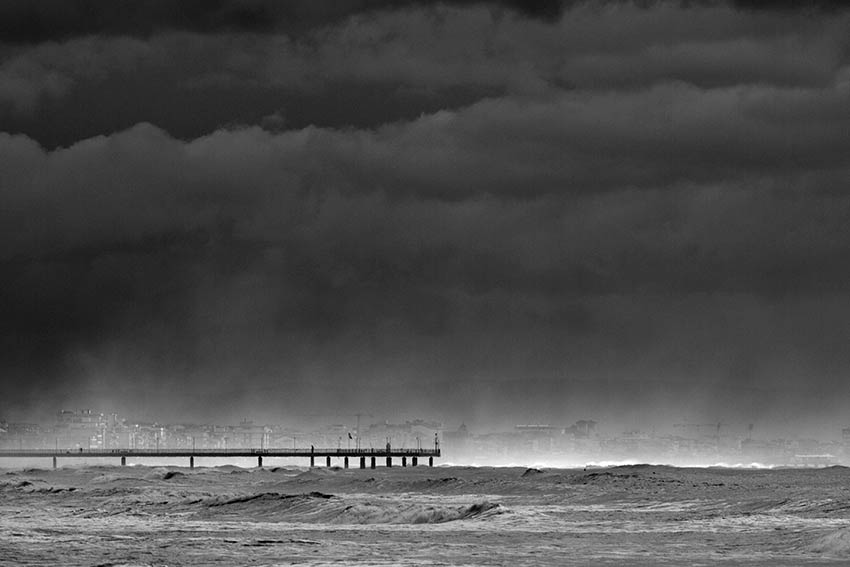 Il progetto “Sempre la solita domanda” nasce in risposta allo stupore che tutt’oggi la gente mostra quando si parla di surf in italia. E’ una raccolta dei migliori scatti fatti con lo scopo di restituire, a chi guarda, le stesse emozioni che ho provato io durante le uscite in costa alla ricerca di onde. Svilupparlo non è stato difficile, sono abituato a sveglie nel cuore della notte e partenze al buio per arrivare al pontile per le prime luci dell’alba, l’unica differenza è che ho sostituito la tavola con una macchina fotografica.
