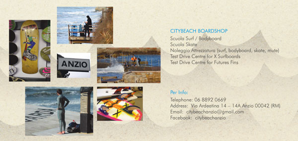 City Beach inaugura il 21 Aprile 2013 alle 17.00 il suo secondo punto vendita, localizzato proprio davanti a due dei migliori spots di Anzio, a sud di Roma, Lido Garda e I Soldati.