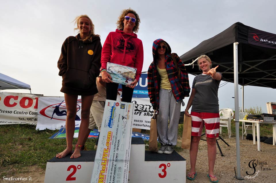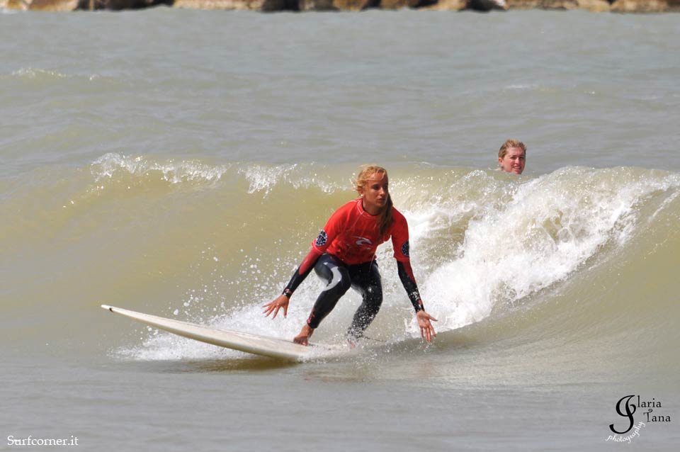 Fischio d’inizio della gara – che ha portato alla vittoria di Matteo Fabbri per la categoria maschile e di Francesca Rubegni per quella femminile – è stato dato nella tarda mattinata, dopo che il campo gara è stato liberato da una session di free surf. La mattina le condizioni erano pressochè inesistenti, ma pian piano lo scirocco ha iniziato a mandare delle barrette ben ordinate che hanno regalato fino al metro di onda in concomitanza dell’inizio delle semifinali maschili. Momento top del mare raggiunto poi al tramonto, nella finale maschile che ha visto scendere in gara, oltre al vincitore del contest, anche la “crew” tutta romana dell’accademia del Surf con Marco Boscaglia (2°classificato), Sergio Sorella (3°classificato) e Damiano Tullio (4° classificato). Titolo particolare di merito poi per Fabio Fele, il più giovane surfer della gara che con i suoi appena 16 anni è riuscito a competere con i più grandi, arrivando fino ai quarti di finale.