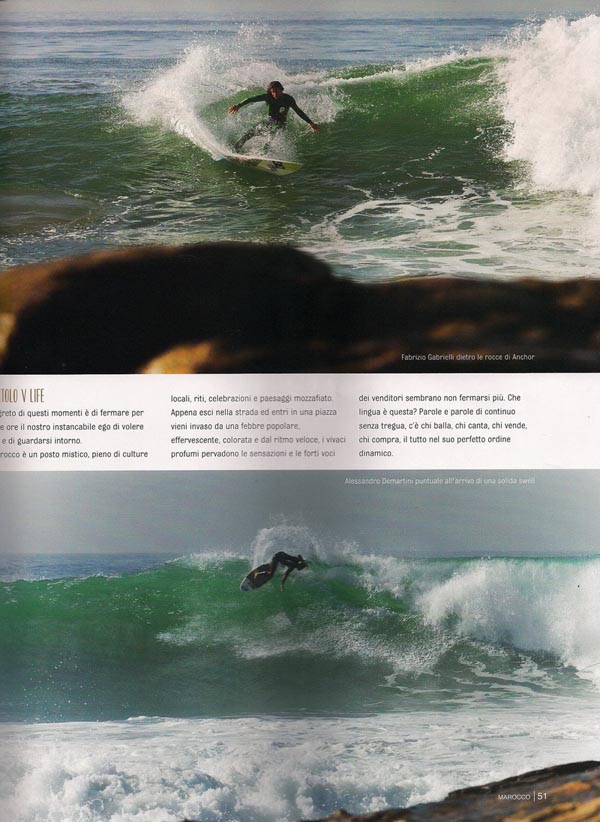 Il Surf Team Protest Italy ha guadagnato ben 16 pagine di report sull’ultimo Surf Latino N° 58 in edicola in questi giorni, con il trip in Marocco che ha visto protagonisti Lorenzo Castagna, Alessandro Demartini e Fabrizio Gabrielli accompagnati dall’obiettivo di Alberto Maiorano e le guide di surcamp.it. Oltre che sulla carta stampata il trip è stato anche oggetto di un mini-documentario by Board.tv visibile al seguente link:http://www.board.tv/2013/05/02/381_1367247696/