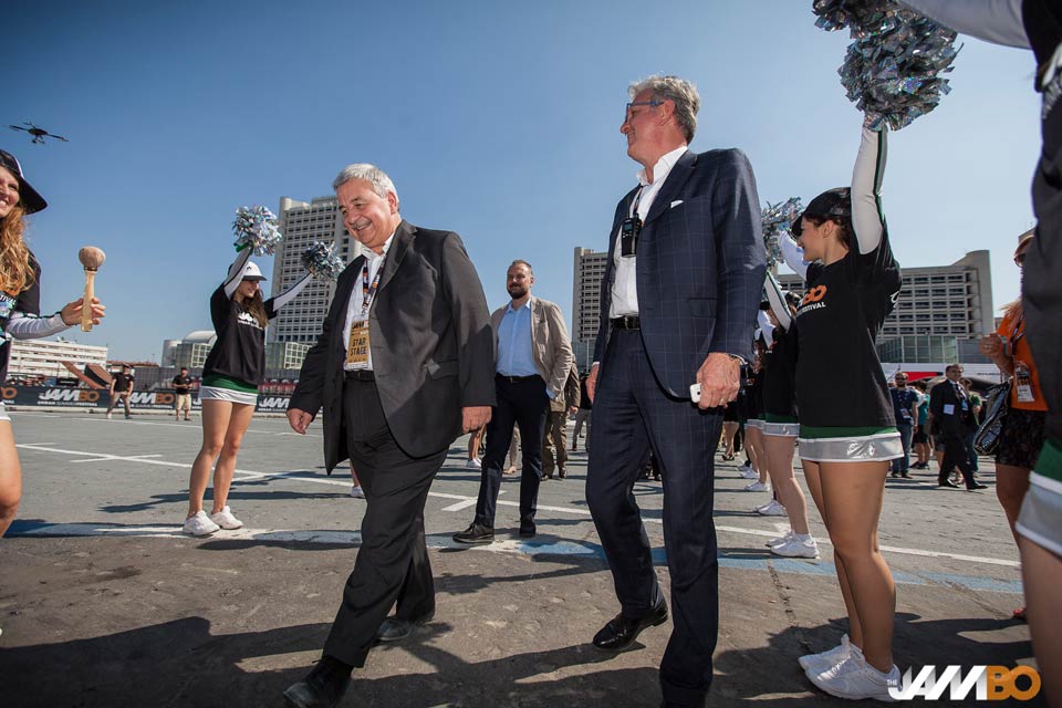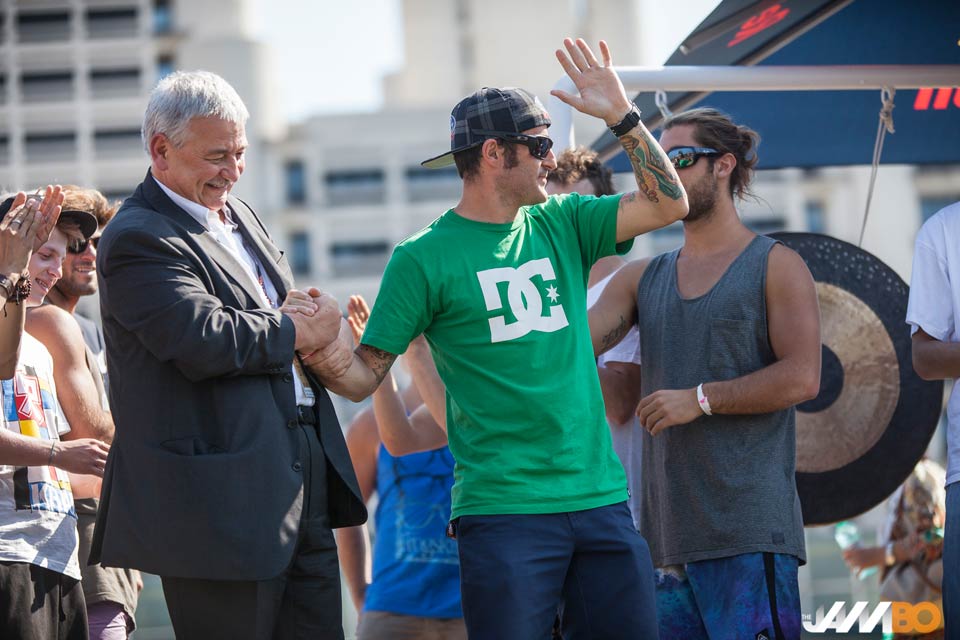 Alle 16:00 l’inaugurazione ufficiale di “The JamBO”, alla presenza del Presidente di BolognaFiere Duccio Campagnoli. Dopo la presentazione dei campioni delle varie discipline, il suono del gong sulla Torre Regia ha dato finalmente il via al mega party in area 48. Tantissimi appassionati del mondo freestyle, rigorosamente in shorts e sneakers, hanno così salutato con le braccia al cielo l’inizio del weekend di musica e divertimento più lungo d’Europa. Piercing, tatoos e musica sparata a palla, facce da JamBO insomma. Mentre volteggiando in aria, incuranti del sole e del caldo, i virtuosi del motocross freestyle, dello skateboard e del surf regalavano al pubblico una sensazionale scarica di adrenalina, esibendosi in spericolate acrobazie.