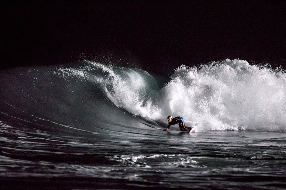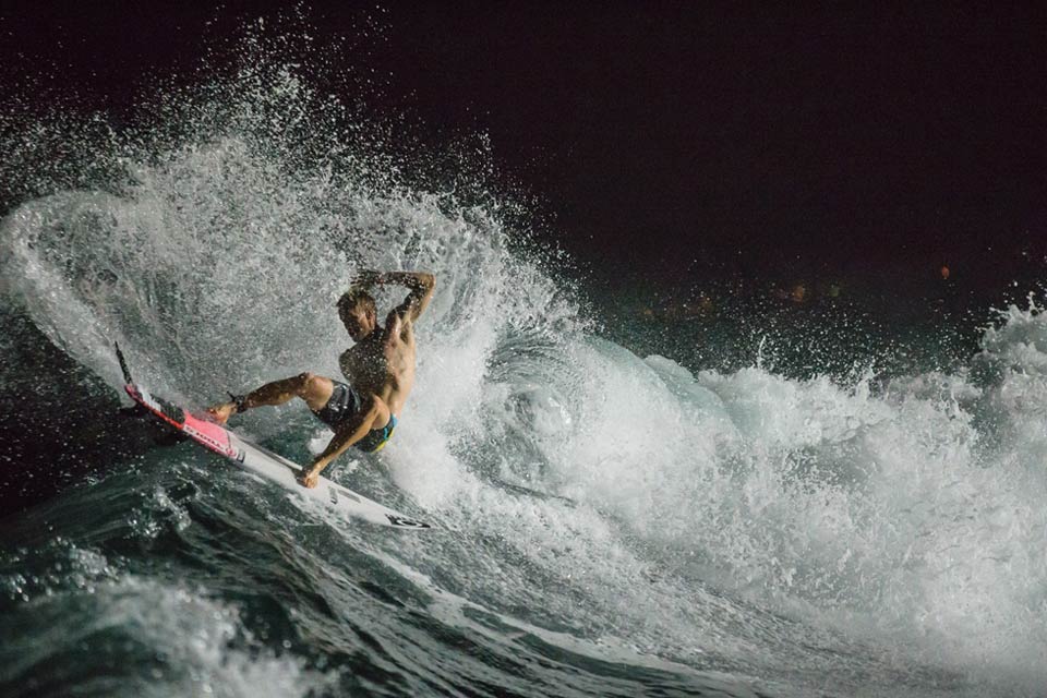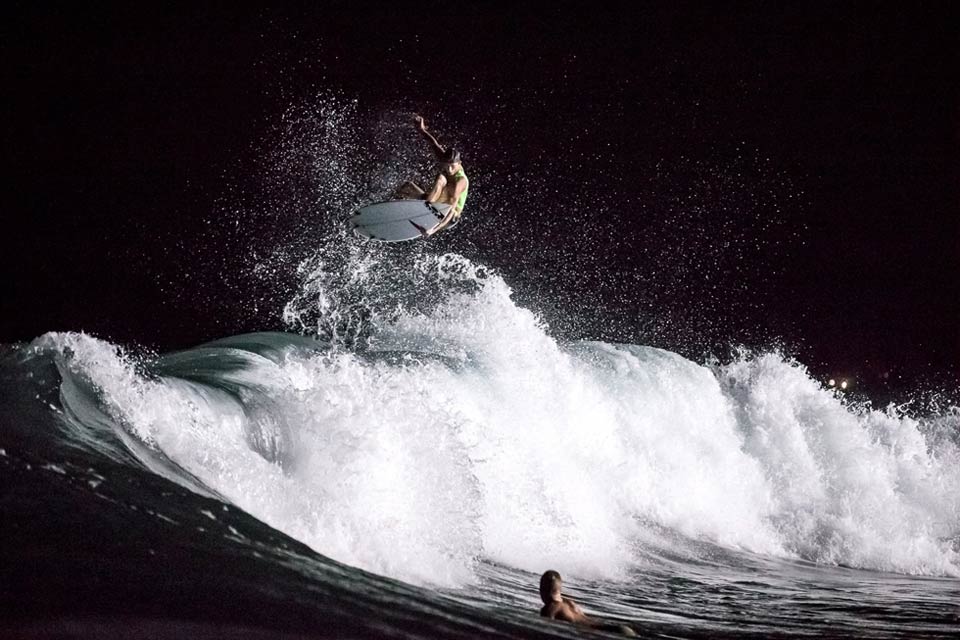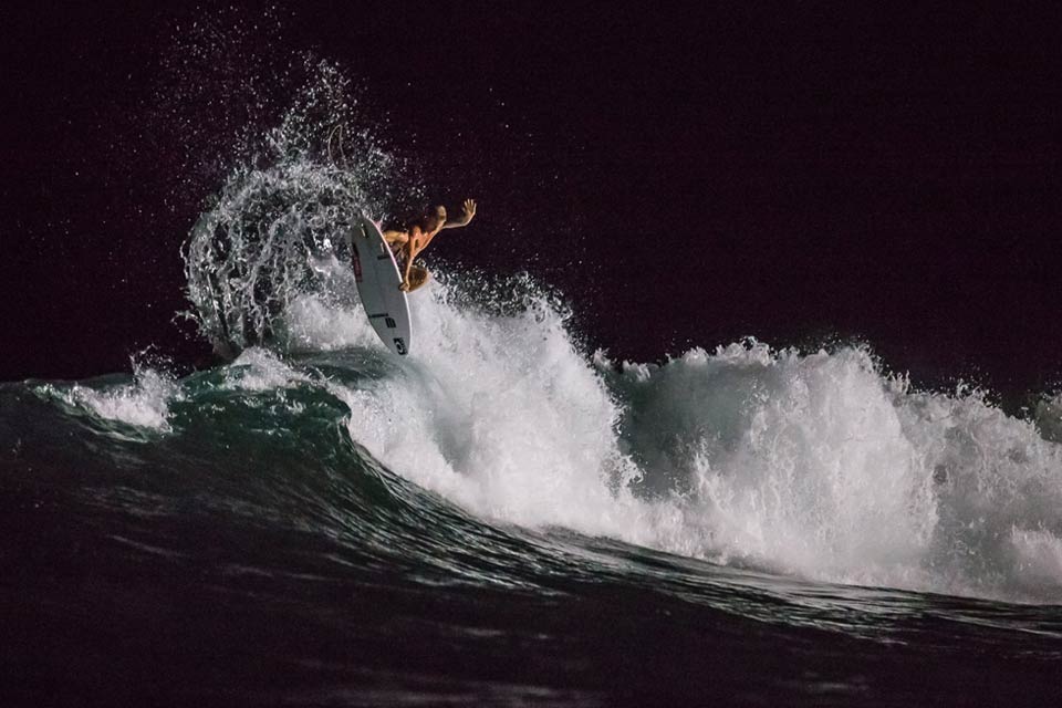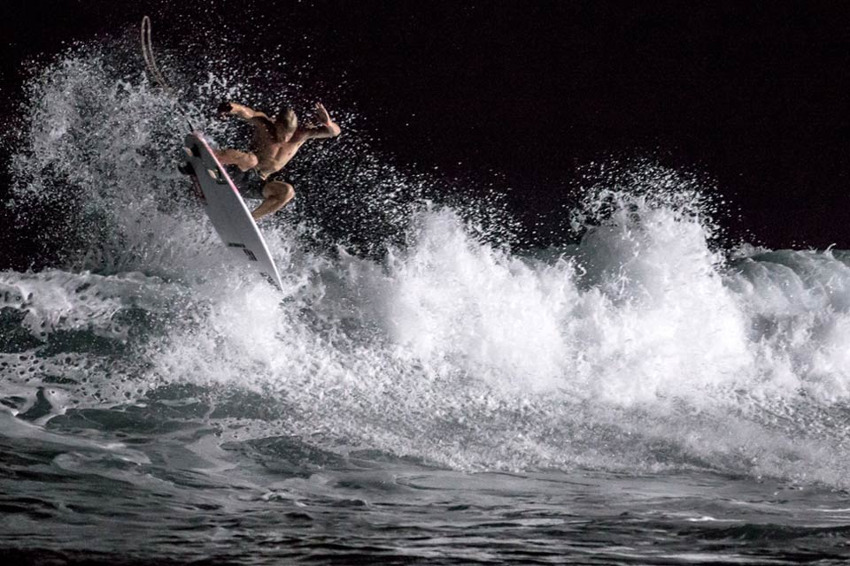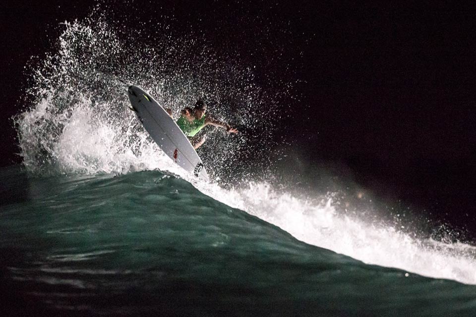 Mentre l’Oakley Pro Bali è stato messo in stand by a causa del calo della swell, e si prepara probabilmente a dover affrontare qualche giorno di lay day fino alla prossima solida swell da Sud Ovest, tra un party e l’altro si è fatto anch e un pò di surf notturno: Bruce Irons, Jack Robinson, Adam Melling e Bede Durbidge. Foto Harrison/Oakley