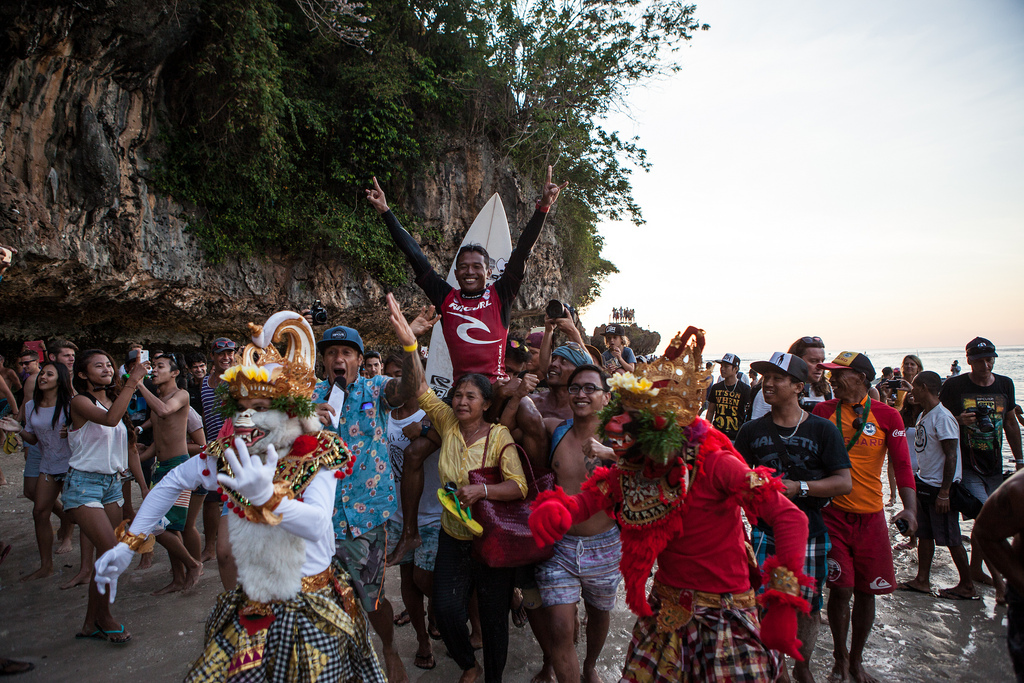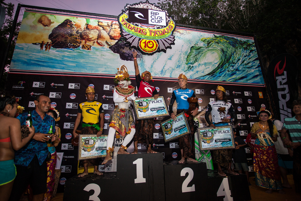 La finale si è svolta al tramonto ed è stato proprio grazie a una delle ultime onde del pomeriggio che Mega Semadhi ha conquistato la vittoria, a un minuto e 40 secondi dal suono della campana, risalendo dalla terza posizione alla prima e vincendo la decima edizione del Rip Curl Cup Padang Padang Invitational.