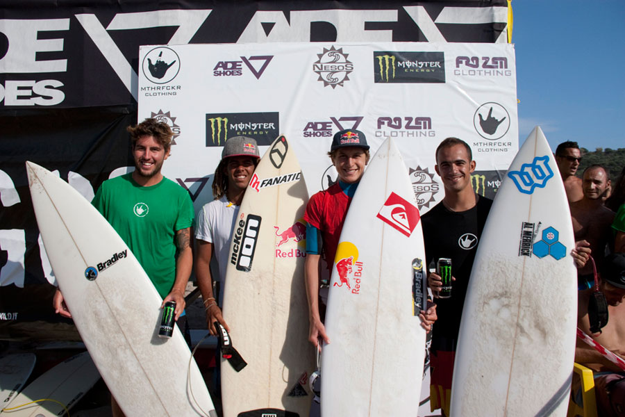 È stata apertissima invece la gara tra Airton Cozzolino e Johnny Hicks per prendere la seconda posizione, che alla fine è andata, ma di pochissimo, a Cozzolino. Nato a Capo Verde 19 anni fa ma residente a Chia, Cozzolino è un asso del kitesurf ma negli ultimi tempi si è dedicato anche al surfing ottenendo degli ottimi risultati anche grazie allo stile moderno fatto di voli e salti stratosferici. L’atleta ventenne Johnny Hicks, di Gisborne, Nuova Zelanda, ha perso dunque di un soffio la seconda piazza ma ha infiammato il pubblico con dei top turn sulle bombe della finale e degli slide sul labbro dell’onda molto radicali. In finale è approdato anche il 24 enne Alessandro Scalas, soprannominato subito il Leone di Buggerru. Scalas, 24 anni, è nato e cresciuto nel paese della provincia Carbonia-Iglesias e si è fatto le ossa tra le potenti onde della zona. Il duro allenamento e una tenacia da vendere gli hanno fatto conquistare il quarto posto affrontando soprattutto una semifinale in cui non ha lasciato scappare neanche un’onda e ha surfato i frangenti della Marinedda spingendo a manetta sull’acceleratore.
