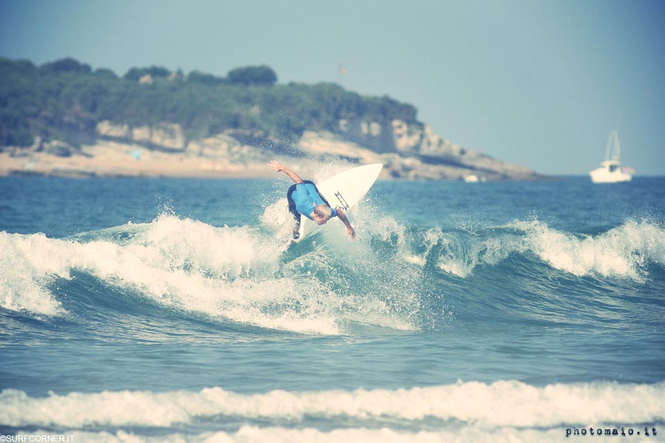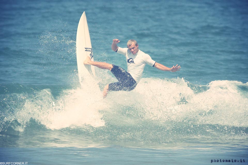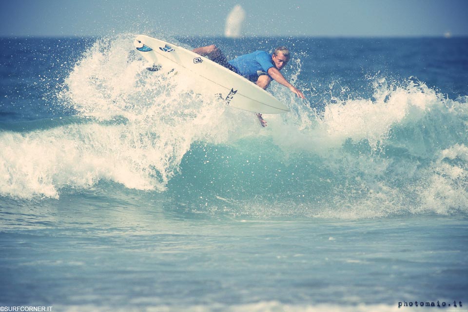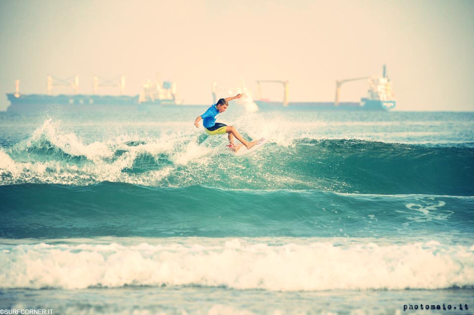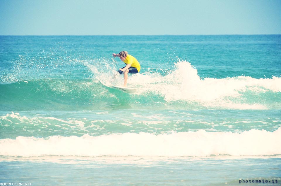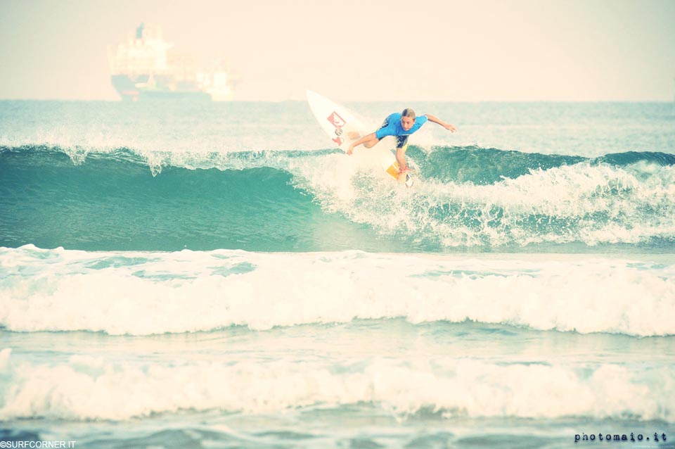 Angelo Bonomelli eccelle sulle piccole onde di Somo. Foto Alberto Maiorano