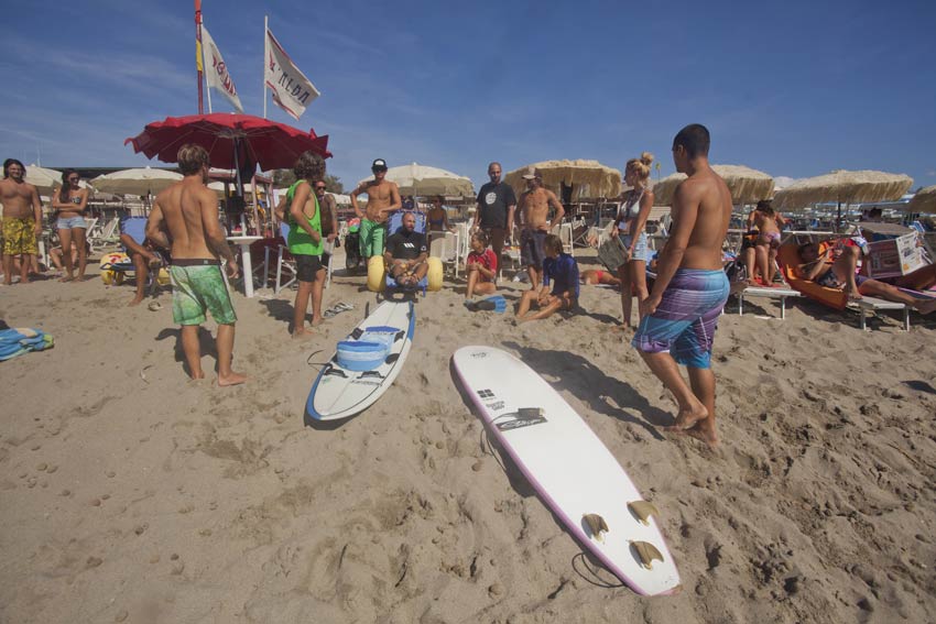 I ragazzi partecipanti dell’ associazione ALBA che non avevano mai nuotato sono saliti sulle tavole con i volontari ed hanno scoperto per la prima volta le emozioni che, non solo planare su una tavola, ma il mare stesso può donare. Questo si lega a uno dei presupposti che hanno portato alla costruzione delle Tavole e cioè la possibilità di usarle non solo per il surf ma come mezzo di trasporto, anche per raggiungere via mare luoghi e spiagge inaccessibili a una sedia a rotelle.