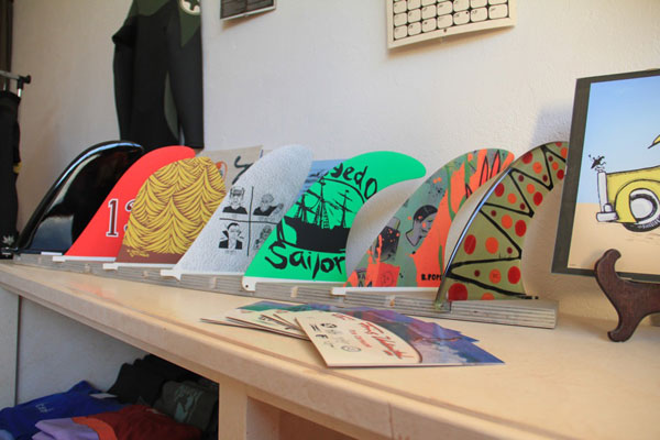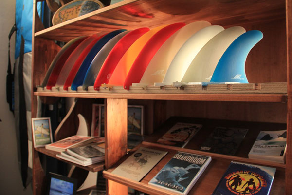 In ultimo, non certo per importanza, una vetrina che ospita l’angolo culturale, con libri, Dvd, Cd e una ampia biblioteca personale che è possibile consultare liberamente. Insomma… 45 mq. di pura esposizione surf!