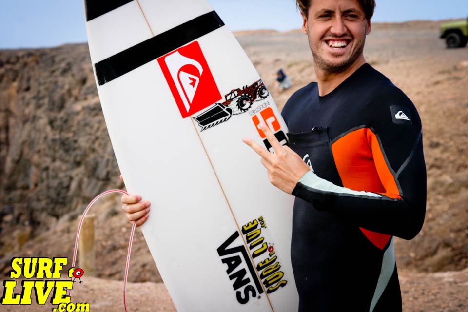 SurfRelax di Follonica capitanata da Nicola di Tondo. I consigli in acqua non sono mancati sia per i principianti che per i più esperti, grazie anche alle dritte dei neo campioni italiani Marco Boscaglia e Francesca Rubegni. La settimana è stata caratterizzata dal vento molto forte, quindi trovare onde surfabili non è stato molto facile ma grazie all’esperienza di Riccardo Villetti e Filippo Orso, ormai veterani dell’isola, siamo riusciti a surfare tutti i giorni onde top! Ovviamente in pieno stile SURFtoLIVE non sono mancate risate e divertimento che ormai caratterizzano i loro surf trip, il tutto accompagnato da cerveza e papas arrugadas! Le giornate da ricordare saranno molte.