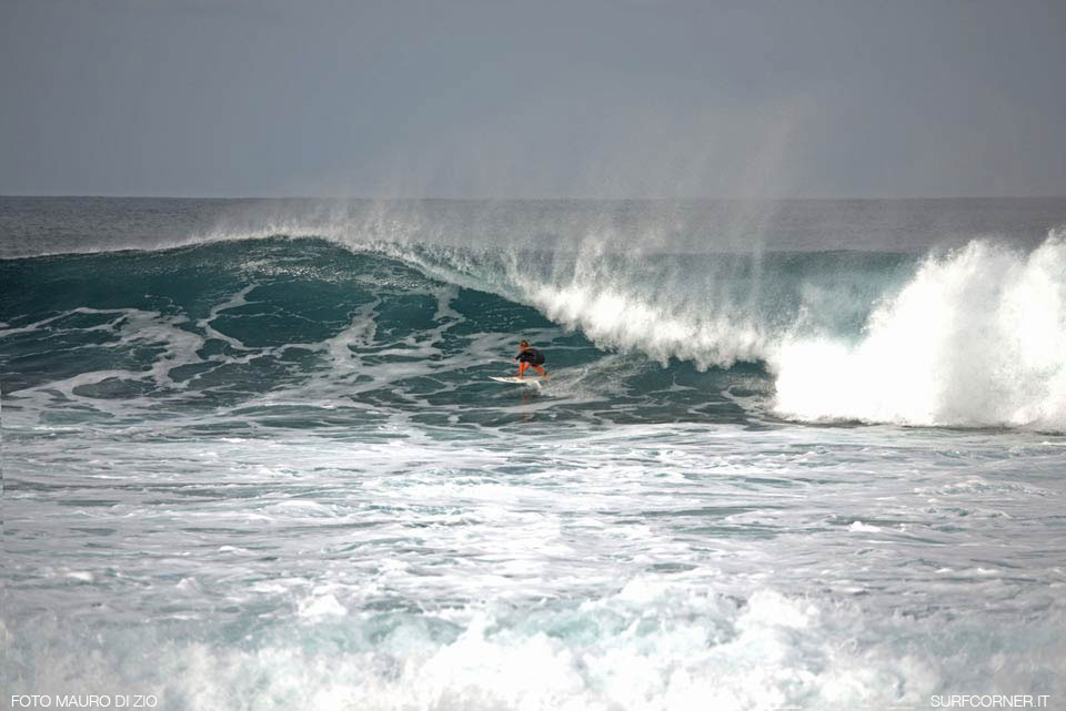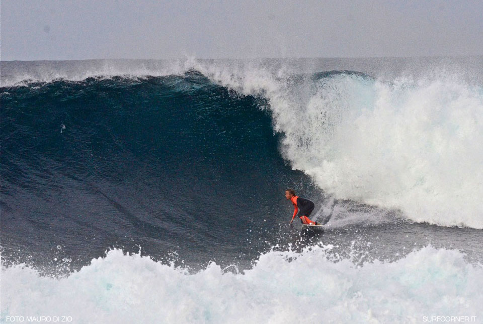 Nei giorni in cui Hercules spingeva le onde sulle coste dell’Europa atlantica, il piccolo Edoardo Papa, 12 anni, si trovava a Lanzarote e ne ha approfittato per sperimentare qualche onda sopra la media della misura su cui siamo abituati a vederlo. Foto Mauro di Zio