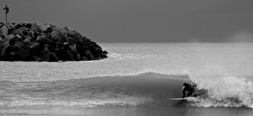 Negli ultimi tempi Marco Morini e Tommaso Pardini sono diventati l’uno l’ombra dell’altro. Tommaso Pardini è un giovane fotografo toscano che sta crescendo molto bene in ambito fotografico dotato di gusto e capacità di visione e in occasione delle ultime mareggiate toscane ha seguito Marco Morini nelle sue session.