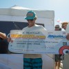 Ronnie Baldini, leggenda del surf versiliese, alza al cielo il primo premio offerto da SURFtoLIVE