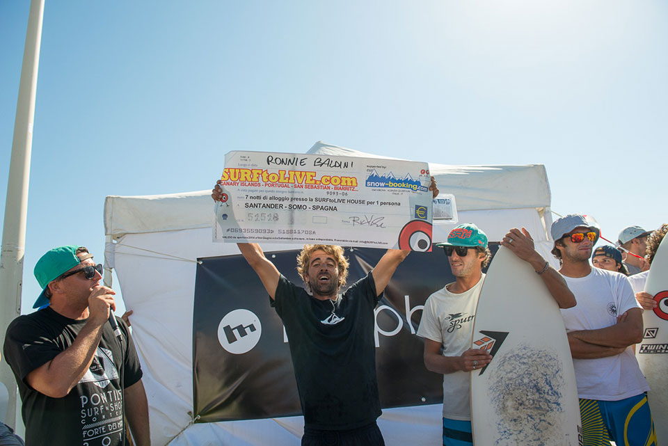 Ronnie Baldini, classificato come primo atleta al contest si è aggiudicato oltre ai 500,00 € del Prize Money una settimana alla SurftoLive House a Somo e un case waterproof della Seawag.