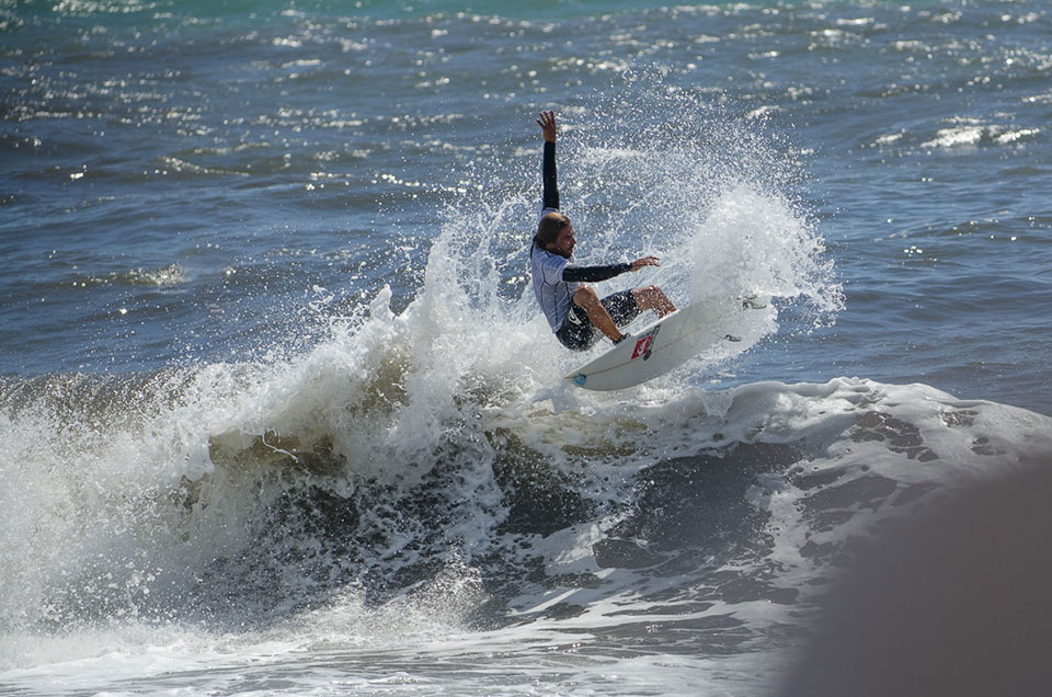 Mattia Migliorini esplode un reentry super radicale sull’ultima sezione dell’onda.