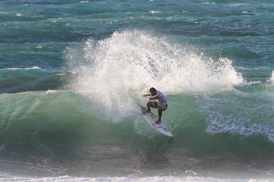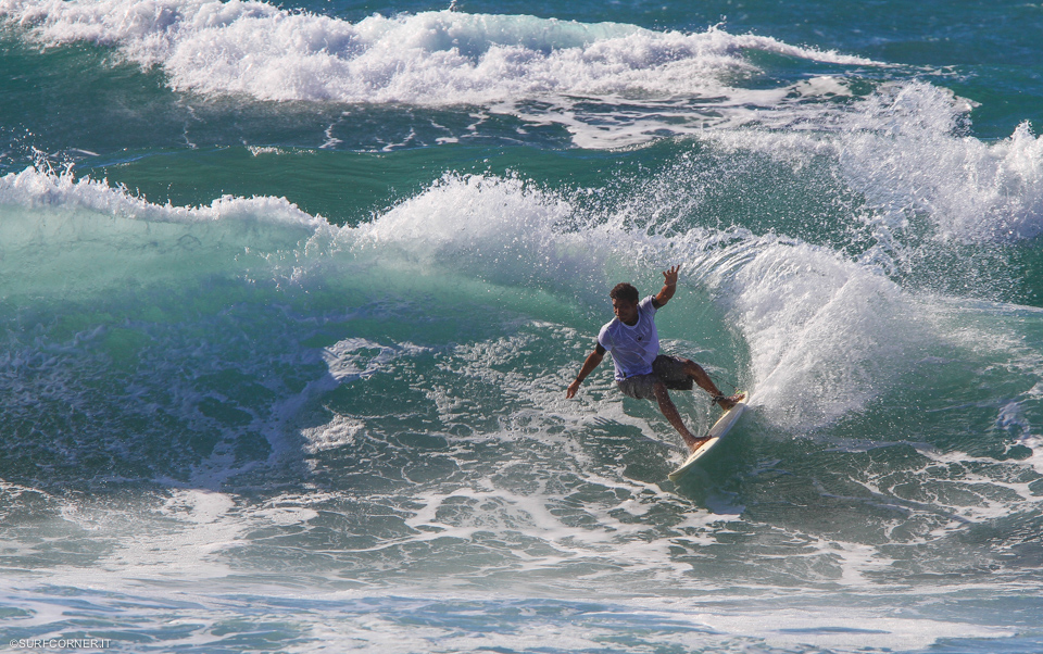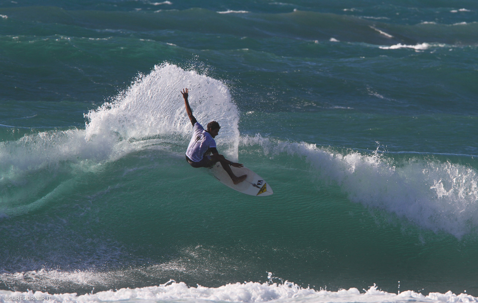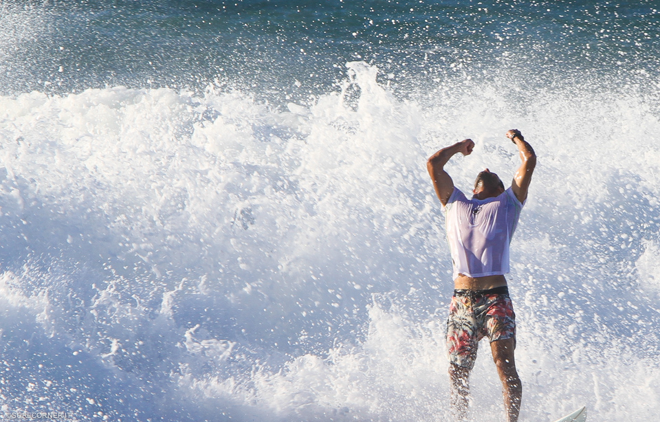 Per tutto il giorno la baia ha continuato a sfornare onde consistenti con una media di un paio di metri e set di tre, srotolando prevalentemente lunghe sinistre su cui i surfisti in back side hanno potuto sfogare tutta la potenza che il back side consente.