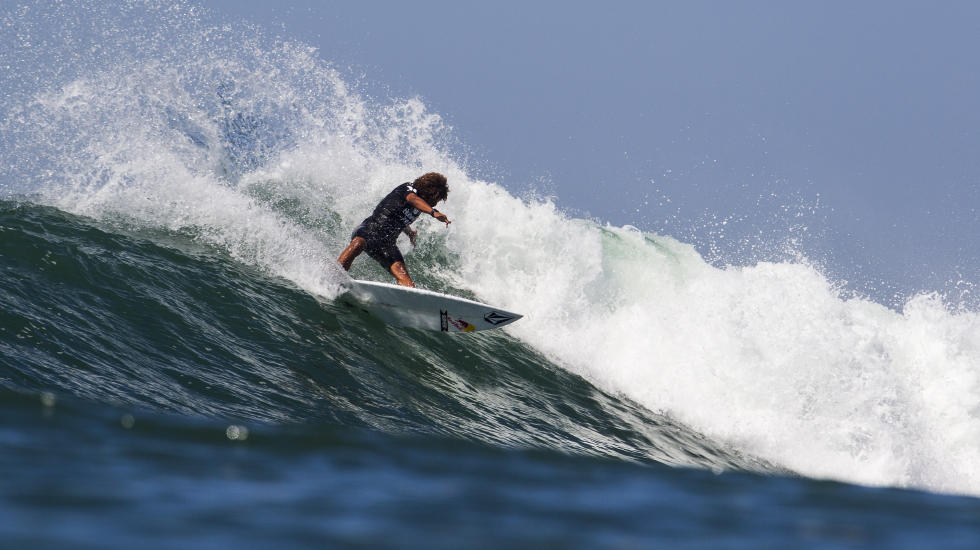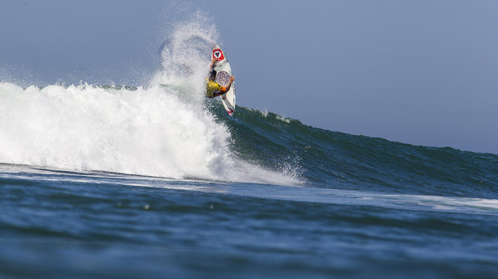 Sono partiti infatti subito male i top 2 del ranking, Gabriel Medina e Kelly Slater, spediti al secondo round rispettivamente dal costaricano Carlos Munoz, eroe del round 1 che passando la heat ha già conseguito un risultato storico oltre a quello di essere il primo costaricano a competere in una tappa del World Tour, e da Tanner Guduskas, anche lui wild card come Munoz ma per niente intimorito da un big come Slater.