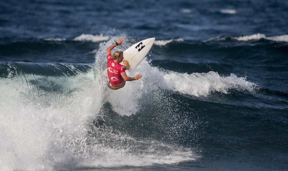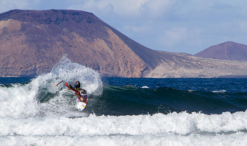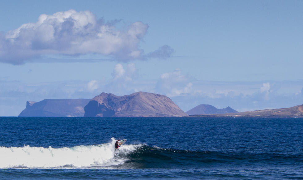 Ancora onde di misura medio piccola per il secondo giorno del Franito Pro Junior in Costa Teguise, Lanzarote, ma la lunga sinistra di San Juan è sufficientemente lavorabile e consente belle e lunghe surfate.