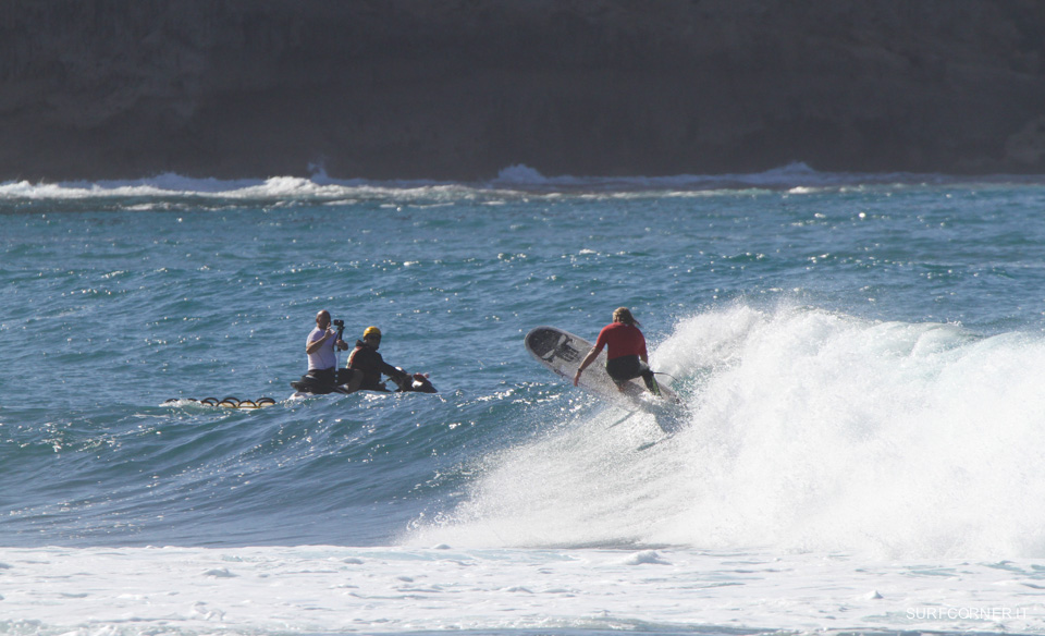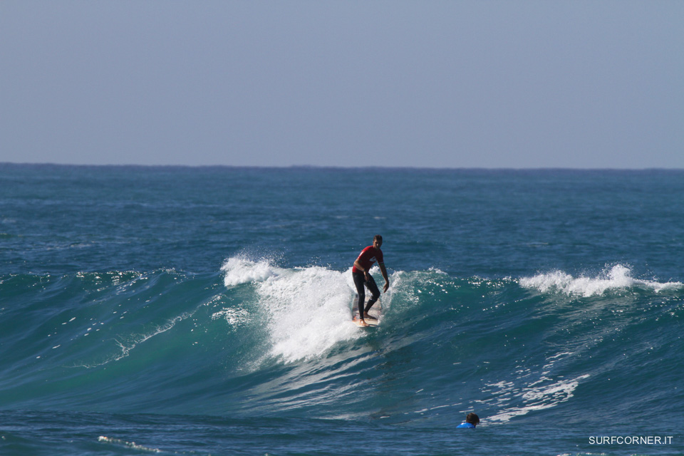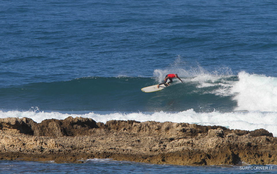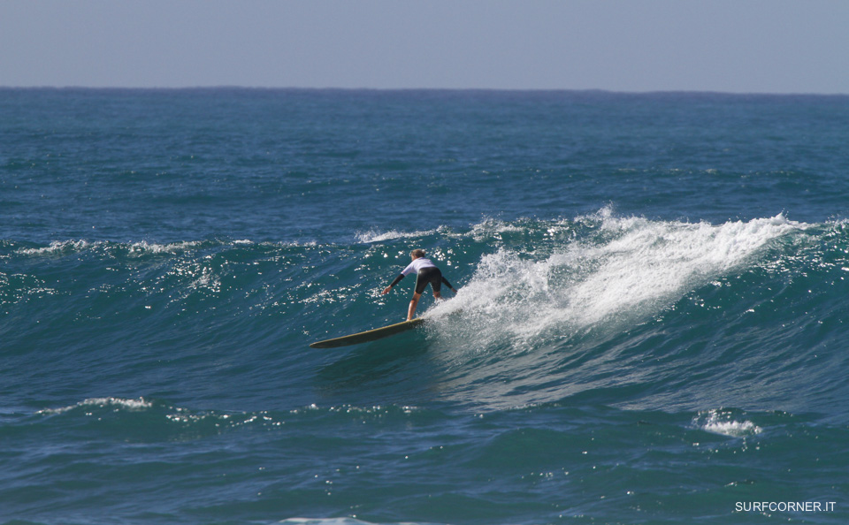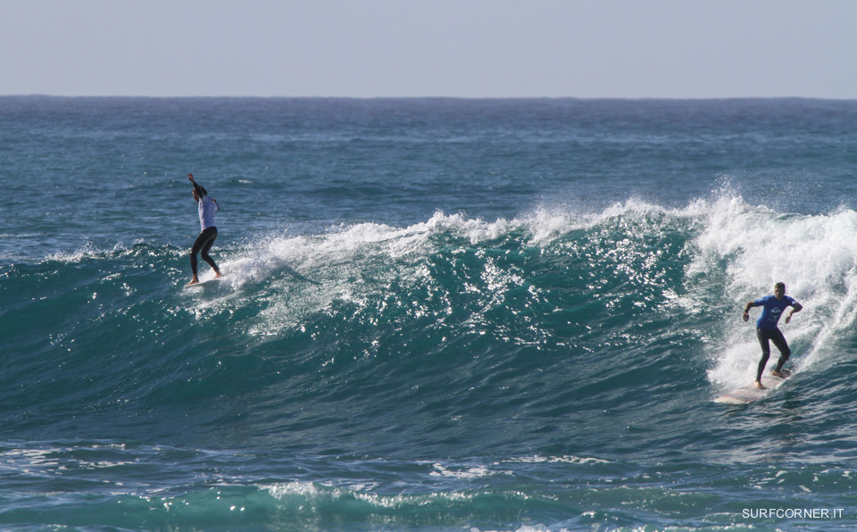 Le condizioni d’onda erano piuttosto impegnative per essere surfate con un long e infatti qualche vittima c’è stata subito dai primi round, con almeno tre tavole spezzate, tuttavia i partecipanti hanno dato spettacolo e anche le ragazze invitate non si sono tirate indietro, surfando anch’esse qualche bella bomba. Onore al merito quindi di Valentina Marconi, vincitrice di questa seconda edizione, e della pluricampionessa Francesca Rubegni che hanno domato le onde di Sa Mesa senza paura.