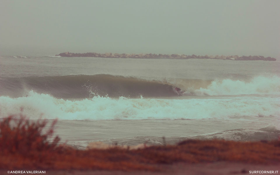 Lo scirocco è venerato dai surfisti adriatici perchè in grado di sfruttare tutto il fetch possibile ed è quello che regala le onde di maggior qualità e consistenza. Con la nebbia, la pioggia, il sole, piccolo o grosso che sia, quando c’è mare da sud est non si butta via niente…