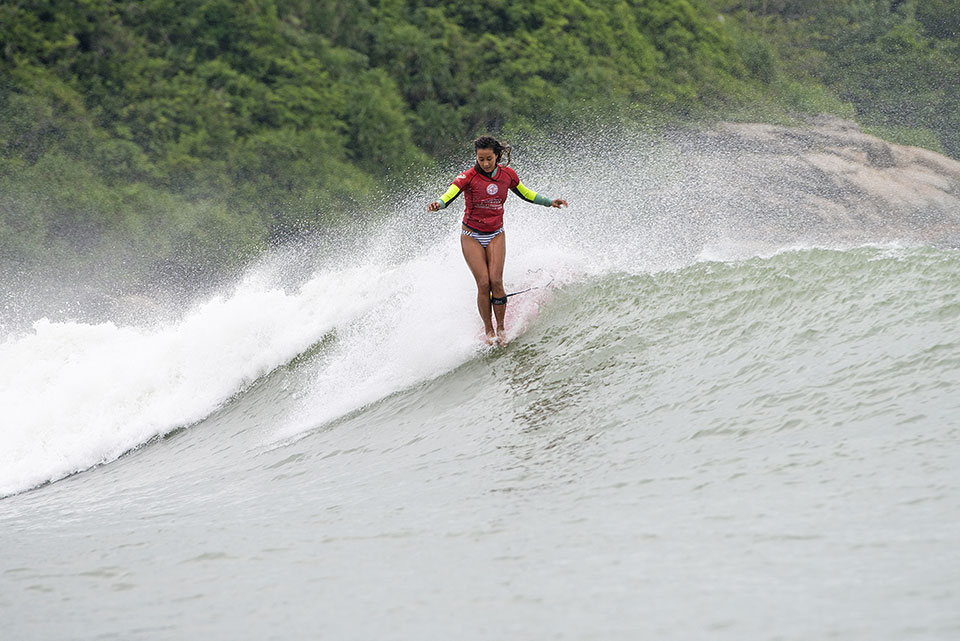 Heat 6: Kelia Moniz (HAW) 18.50, Atalanta Batista (BRA) 14.55, Yingyijing Huang (CHN)