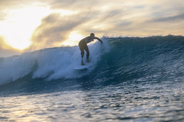 “Ieri sono andato a fare lo stampo per una nuova protesi. Questa sarà diversa, sarà con un piede più dinamico e ammortizzato e con uno snodo alla caviglia, un piede che sino a oggi avevo solo potuto sognare; spero mi permetterà di muovermi naturalmente sulla tavola e osare più tricks. Non voglio limitarmi ad alzarmi e abbozzare qualche curva o qualche attacco al lip, vorrei capire dove si può arrivare. Vedere anche cosa può succedere con un wipeout di 3 metri –a Bali avevo iniziato a vedere cosa posso fare con onde di misure importanti… Voglio vedere se ci sono limiti, provare a superarli e condividere tutto quello che scopro con altri surfisti come me e lavorare insieme per apportare cambiamenti, anche minimi, agli adattamenti per poter dare il massimo e surfare sempre meglio.”