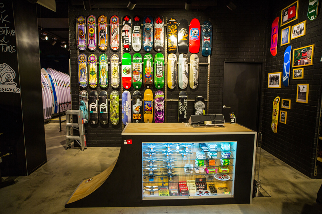 La collezione DC invece è allestita all’interno di un corner in stile urban con un inconfondibile skate wall, dove sono appesi più di 200 skateboard e dove è presente tutta la collezione di sneaker.