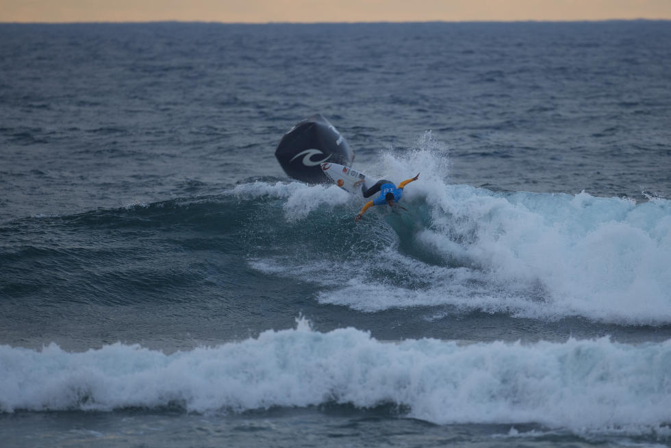 Fanning ha suonato le campane al termine di una battaglia serratissima contro Adriano de Souza, al termine della quale entrambi si sono ritrovati con un punteggio di 15.27, ma la vittoria è andata a Fanning che aveva il punteggio su singola onda più alto, 8.17.