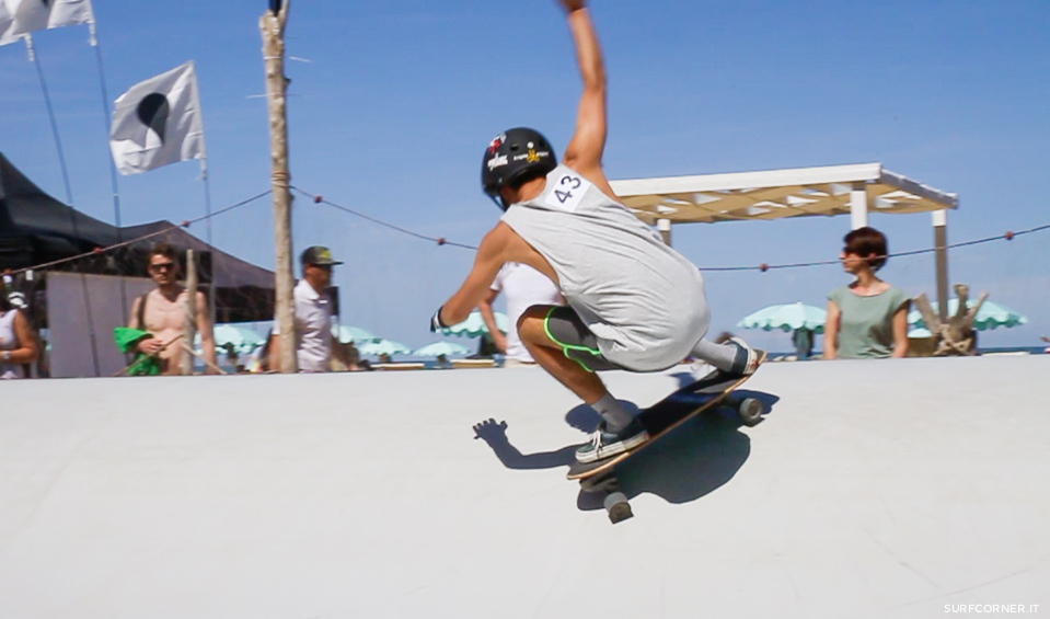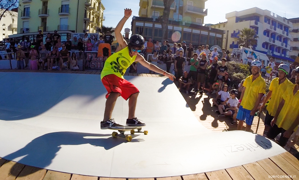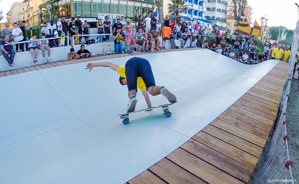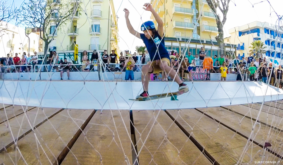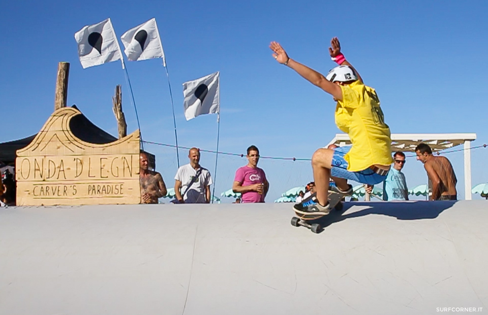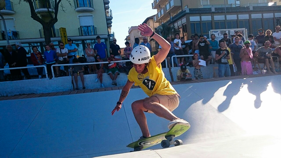 Davanti a un folto pubblico si è svolto domenica 10 maggio il primo contest di surf skate sull’Onda’d Legn di Torre Pedrera, l’onda solida che permette di simulare i movimenti e le manovre che normalmente si fanno sul surf e costituisce quindi un ottimo allenamento alternativo in mancanza di onde vere.