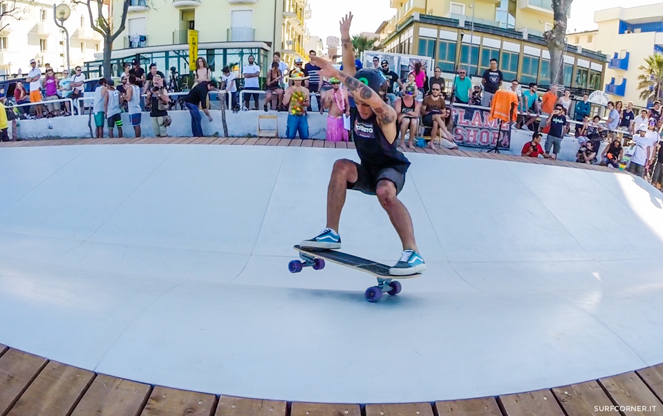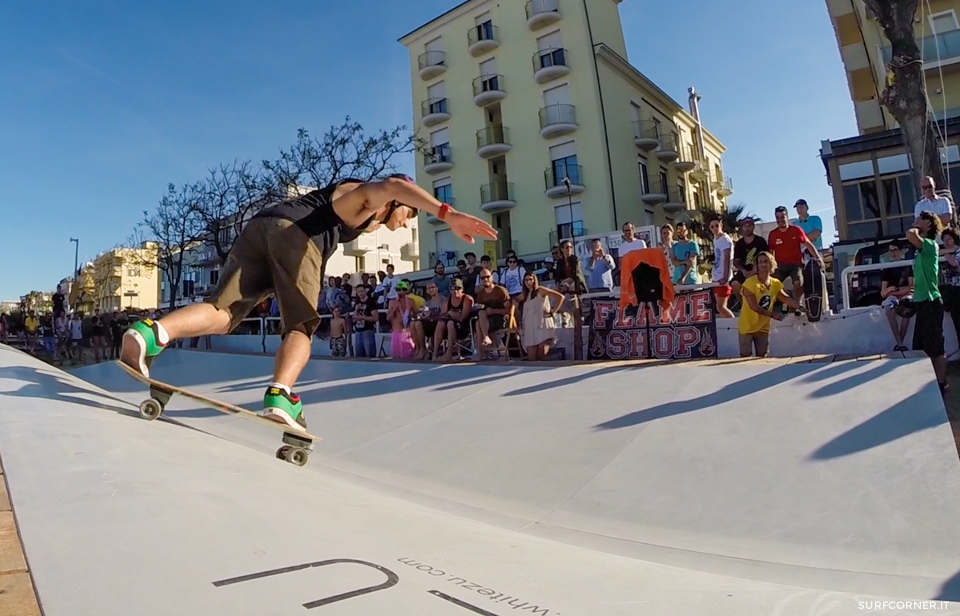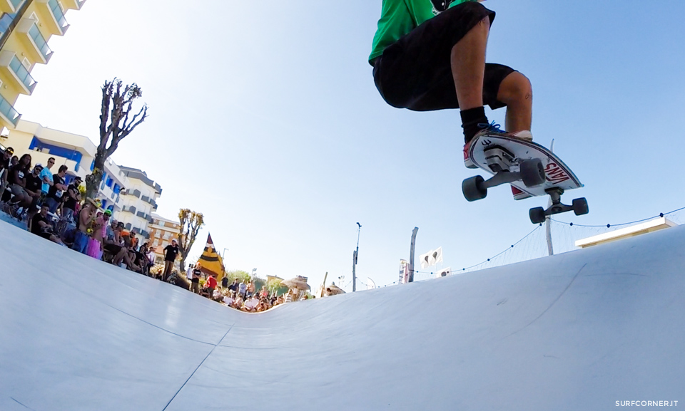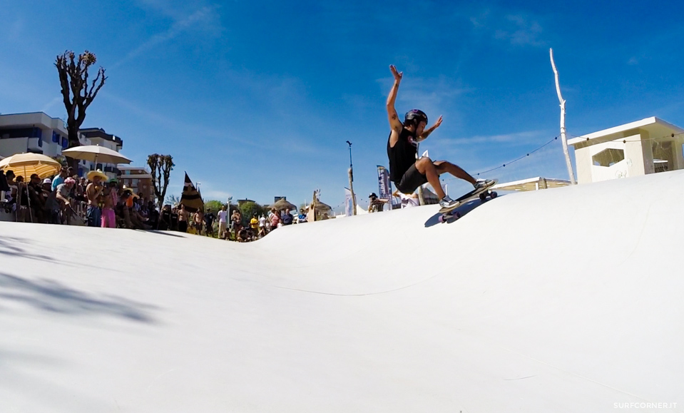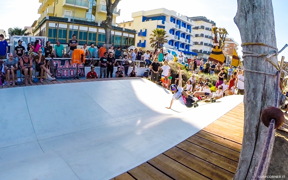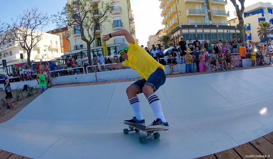 Davanti a un folto pubblico si è svolto domenica 10 maggio il primo contest di surf skate sull’Onda’d Legn di Torre Pedrera, l’onda solida che permette di simulare i movimenti e le manovre che normalmente si fanno sul surf e costituisce quindi un ottimo allenamento alternativo in mancanza di onde vere.