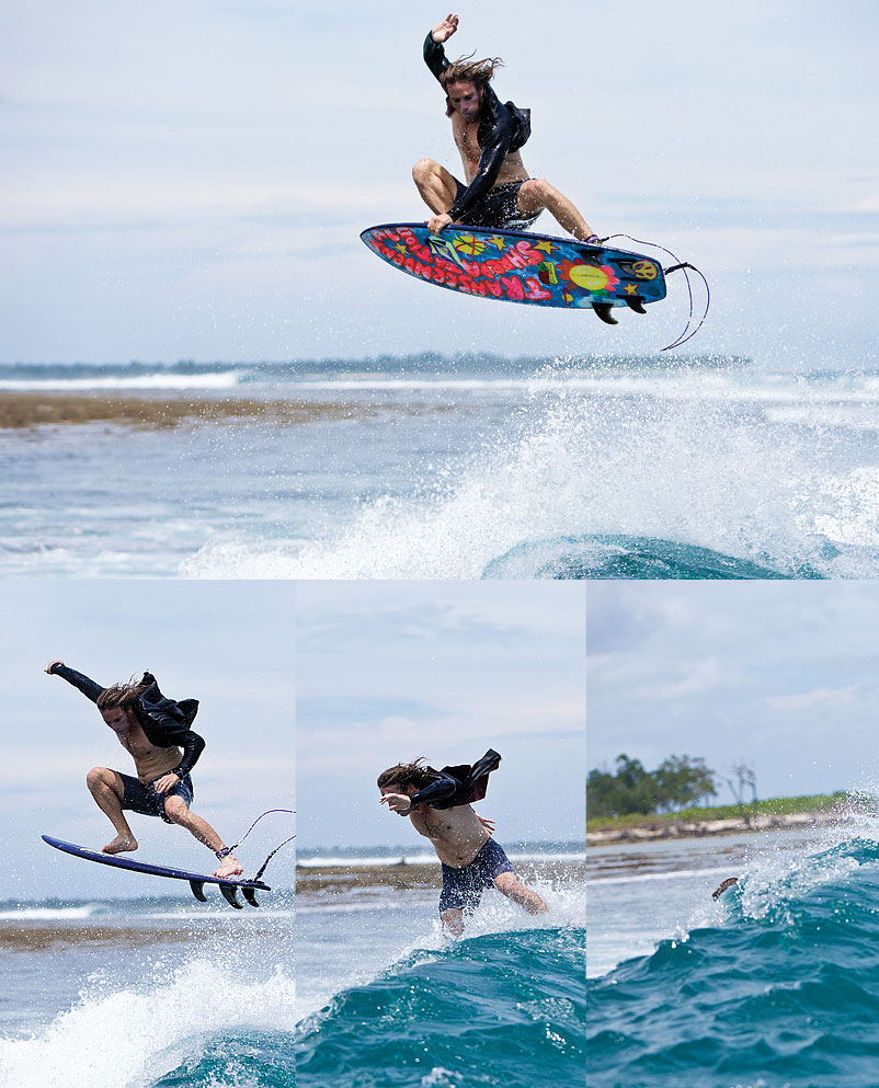 “Grazie al manager Roberto Formento, che fra l’altro aveva piú di 20 anni fa sponsorizzato me ed una combriccola di amici con un’altro brand per le gare che facevamo di boarder cross, e che con sorpresa mi ritrovo dall’altra parte della scrivania nella sede Santa Cruz di Milano, e del loro team manager Devid De Palma, amico e collaboratore ormai appassionato di surf da anni. “