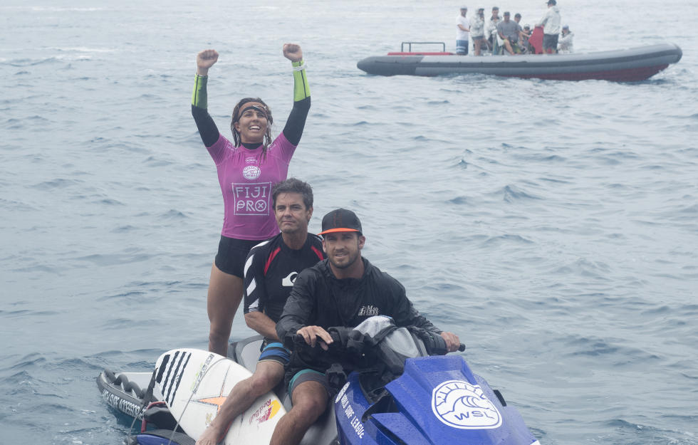 Fiji Women’s Pro Semifinal Results: SF 1: Sally Fitzgibbons (AUS) 16.83 def. Lakey Peterson (USA) 3.33 SF 2: Bianca Buitendag (ZAF) 18.40 def. Johanne Defay (FRA) 16.97
