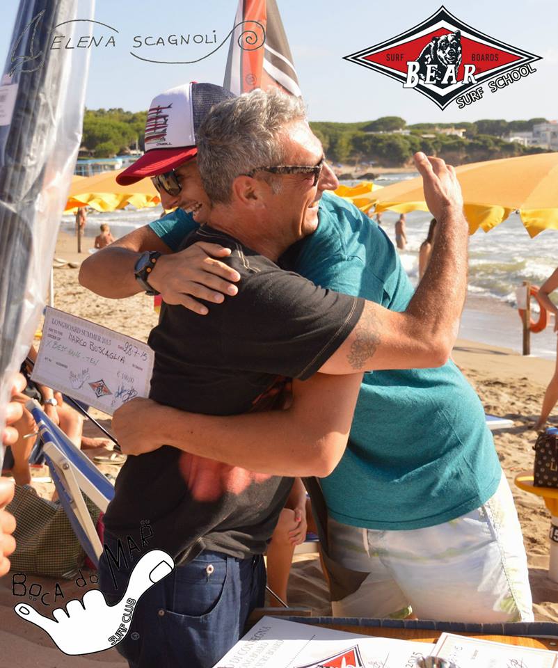 Ovviamente un ringraziamento va in primis alla Bear per aver creduto in noi e permesso tutto questo, al comune di Tarquinia che ogni anno ospita sulle sue spiagge una importante tappa della Coppa Italia di Surf, alla Federazione Italiana Surfing (Fisurf) capitanata da Alessandro Di Spirito, a Massimo Mojoli che da sempre supporta e dona linfa vitale alle attività sportive vicine ai ragazzi ed ai bimbi della città di Civitavecchia e Tarquinia a Chingo di Giampiero Cozzolino alla Sics Tirreno (Scuola Italiana Cani da Salvataggio) che pattuglia queste spiagge tutti i fine settimana, alla Croce Rossa Italiana, a tutti e dico tutti i Surf Club intervenuti con i loro atleti arrivati letteralmente da tutta italia, a Luca Pacitto che insieme con me ci ha intrattenuto al microfono per tutto il giorno, a Longboard Italiano e a Surfcorner presenti alla gara per immortalare nei loro archivi fotografici questa indimenticabile giornata, ai fotografi Elena Scagnoli, Anzio 360 Photo di Giuseppe Lupinacci e Rino Quisco il nostro capo della sezione Salvamento di Genova di Civitavecchia appassionato di foto e surf e naturalmente in ultimo ma non infine alla Giuria Federale, aiutata e supportata dalla nostra brava e bella beach marshall e tabulator Nicol Ciocci, composta da Federico Zaltron, Valerio Tortorici e Giuseppe Arioni, che hanno giudicato con professionalità e imparzialità permettendo il regolare svolgimento di tutta la gara e che sono stati raggiunti al momento delle premiazioni dall’ intramontabile Gennaro Capasso.
