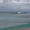 Onda che rompe a picchi sparsi su sabbia mista corallo roccia sia destra che sinistra.