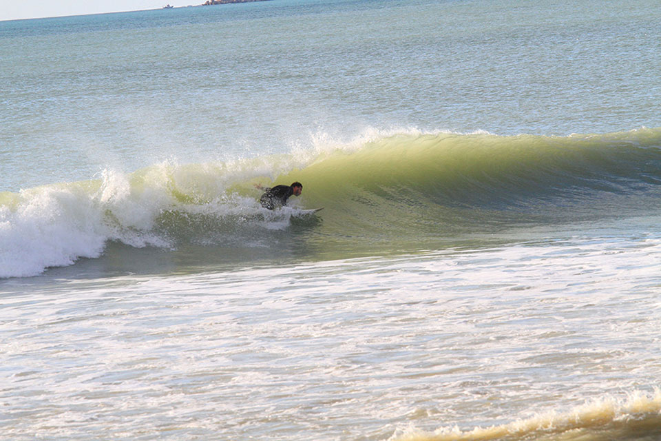 “Ho iniziato a surfare all’età di 18 anni grazie ad un mio amico che da 5 anni non c’è più” ci racconta Michele “i miei home spot ad Agrigento sono tanti e situati lungo il Lido di San Leone, che è la zona balneare: la terza spiaggia è un beach break dove di solito fa onde sia destre che sinistre, Ponente del porto ha un fondale roccioso e le onde arrivano sia con venti di scirocco sia con il maestrale e il ponente, lavora molto a sinistra mentre la destra è più corta come onda. Il Caos è sempre un beach break, dove rompe un’onda destra lunga, lavora con il maestrale attivo perché ha una montagna che lo ripara dalle raffiche, ed infine ci sono i secret point…”