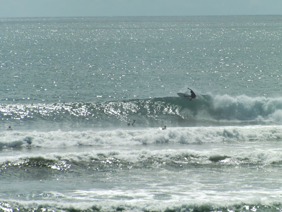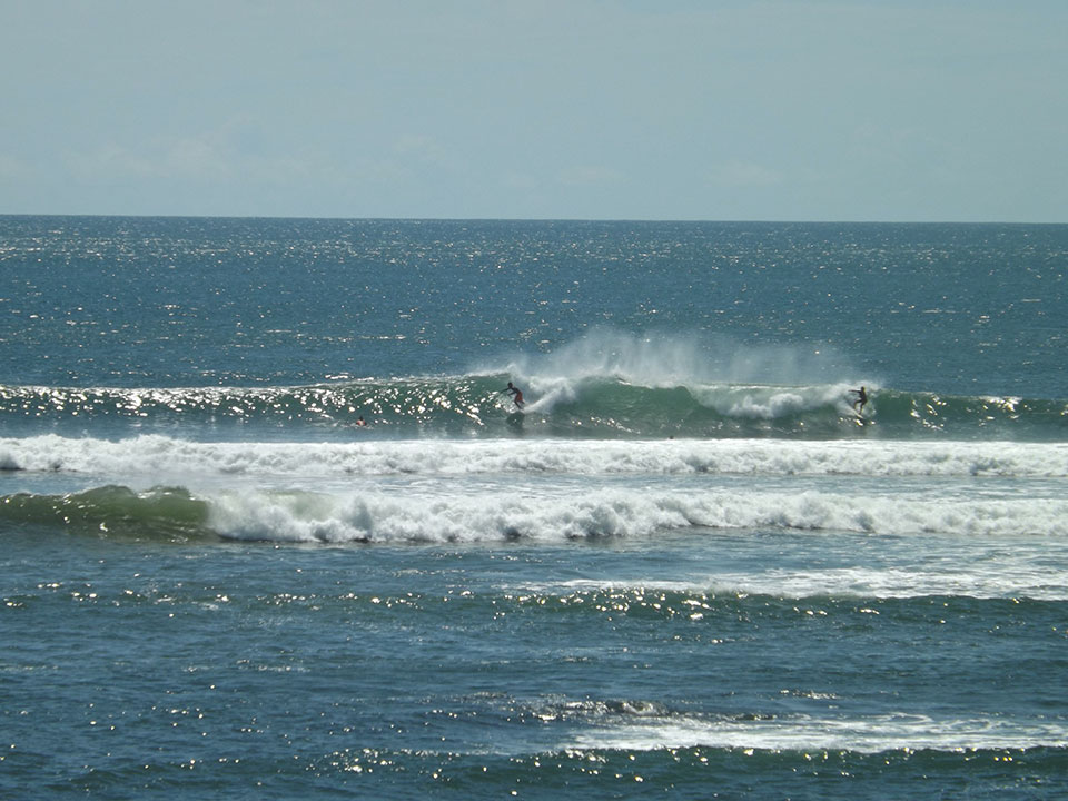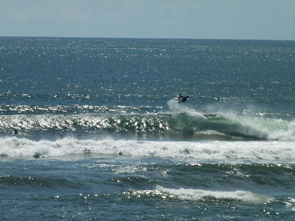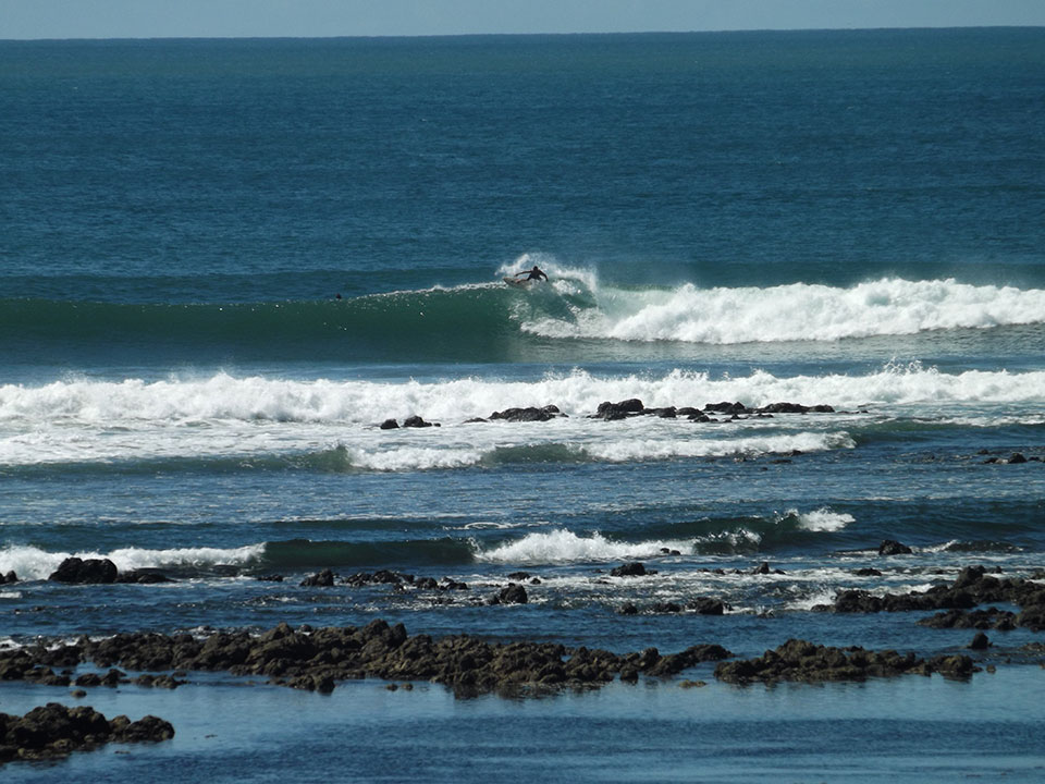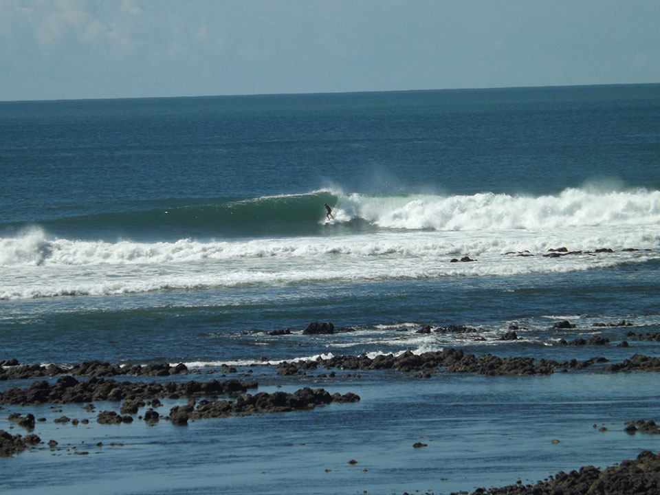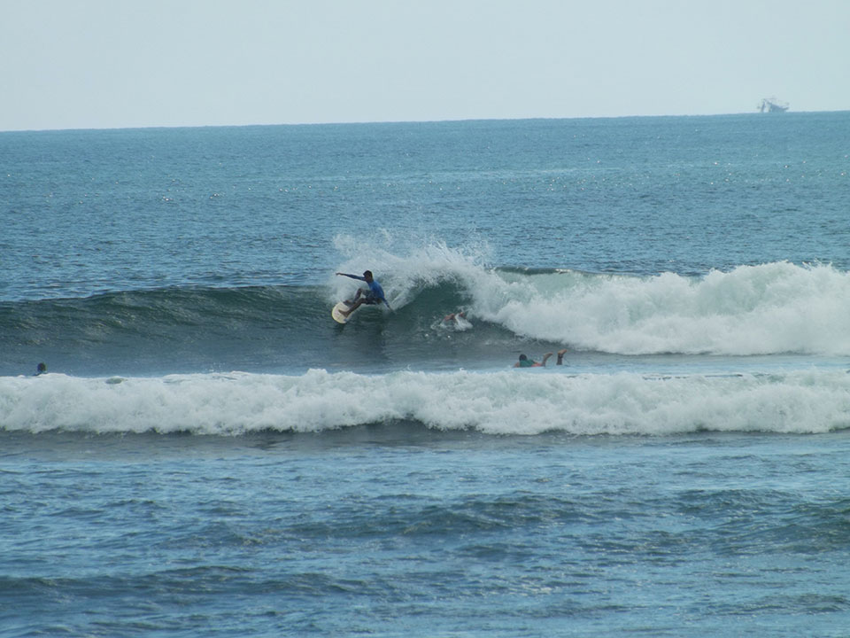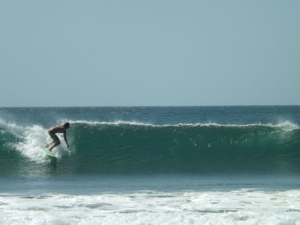 Andrea ogni giorno aspetta la marea giusta per poter uscire a surfare a La Punta.  A Playa Estero un giorno provo anche io; ho già surfato qualche volta ma in questo oceano  potente è la prima volta. Ho un po’ paura anche se le onde sono piccole, ma Andrea mi accompagna e mi fa salire sulla tavola; mi arrivano diverse schiume in faccia ma andiamo avanti; quando arriva l’onda comincio a remare e lui mi aiuta dandomi una spinta. E’ fatta, cerco l’equilibrio e mi alzo…