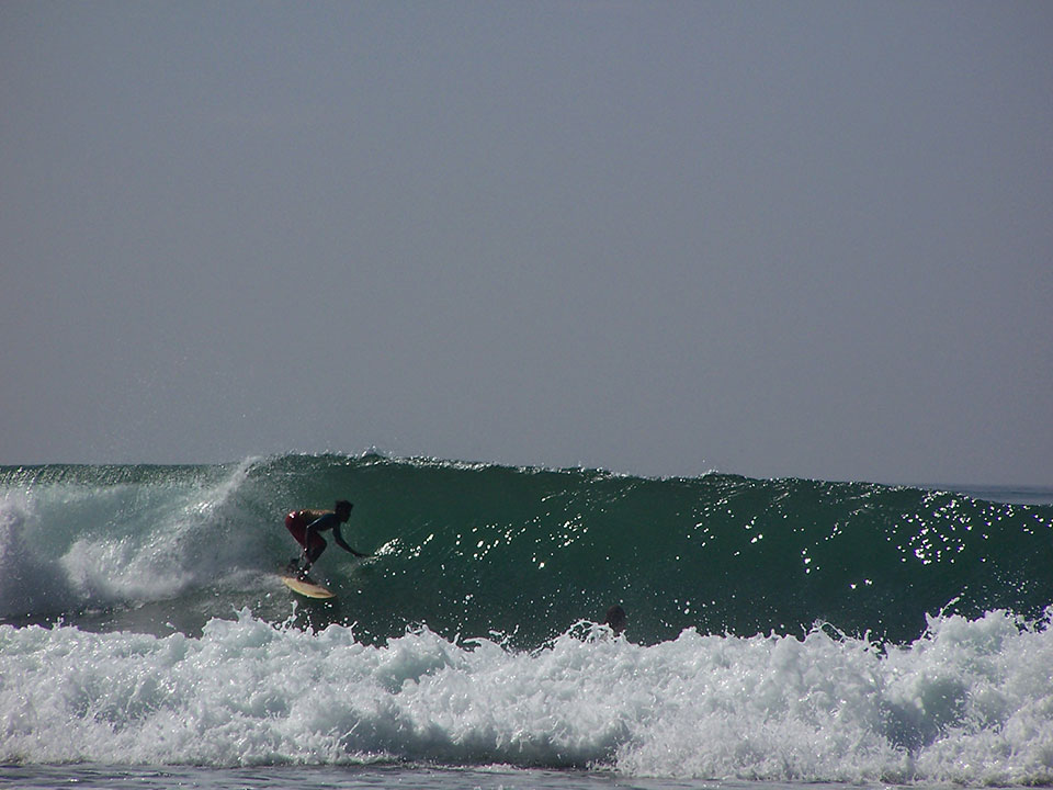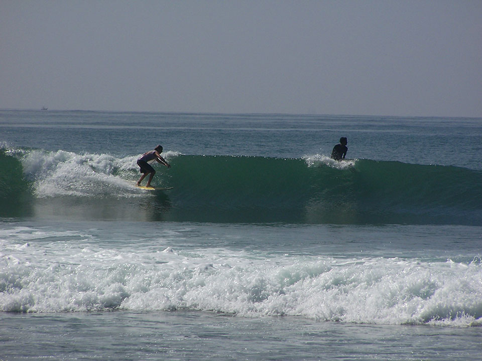 Solo il giorno successivo con la luce del sole ci accorgiamo del segno sui muri lasciato dallo tsunami di qualche anno prima. E con uno strano senso di tristezza mi fiondo a vedere il mare: onde perfette senza vento. Corro a mettere le pinne al longboard e mi butto subito in acqua, da solo per almeno due ore. Ogni tanto mi accorgo del passaggio tartarughe di fianco a me, che alzano e abbassano la testa! La visuale dall’acqua è paradisiaca: spiaggia quasi deserta, palme da cocco e una natura incontaminata.