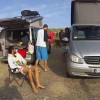La mattina seguente, sorrisi, abbracci, tavole nel furgone e si parte.