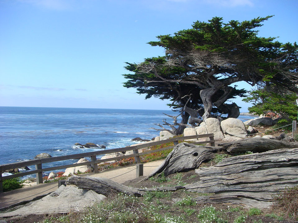 Percorrendo una stretta strada a due corsie, lo spettacolare tratto costiero che separa la baia di Monterey da Big Sur è un regalo della natura: tra gli interventi umani più invasivi si possono notare solo verdi campi da golf, impeccabili distese che alternano ville dal valore inestimabile, nel breve tragitto della Seventeen-mile-Drive che sfocia nella cittadina gioiello di Carmel. Il Big Sur, ultima roccaforte eco-sostenibile, chiude geograficamente la parte più incontaminata e selvaggia dello stato, prima di approdare alla più modaiola e cementificata regione di Los Angeles. Rocce rossastre e foreste di sequoie giganti scendono a picco sull’oceano regalando vedute pittoresche; qui non esistono negozi, banche e impianti elettrici: al calar del buio rimane illuminata solo dalla luna e le stelle. Nessuna descrizione è sufficiente a preparare il passante all’esperienza di questa costa rude del Big Sur, di cui amavano scrivere negli anni sessanta poeti e scrittori della Beat-Generation in ritiro spirituale.