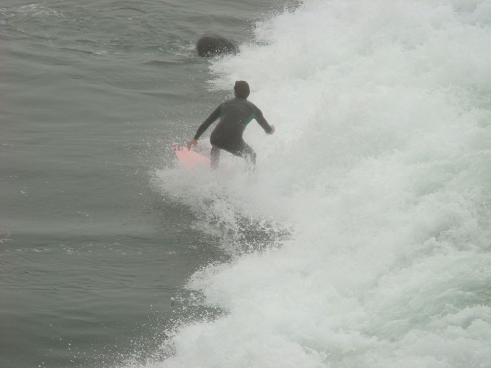 L’occasione si presentò di lì a poco, a Pismo Beach: tutte le condizioni di mare e vento giocavano a nostro favore. La spiaggia risplendeva dorata sotto il faro smorzato del sole al crepuscolo e un molo separava le acque della piccola baia, come una passerella sopraelevata in mezzo a una distesa blu che spariva all’infinito. Dopo aver indossato nervoso la muta e cercato il nostro spot perfetto, ci avviammo nelle pungenti acque del Pacifico, che si preparava ad affrontare la movimentata stagione invernale, dopo una dormiente estate.