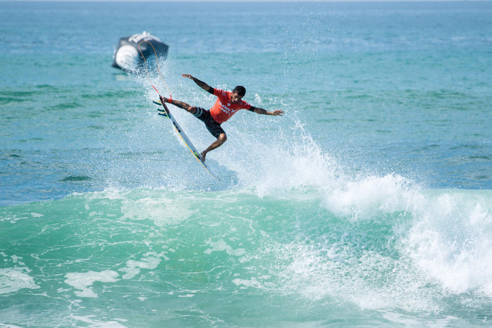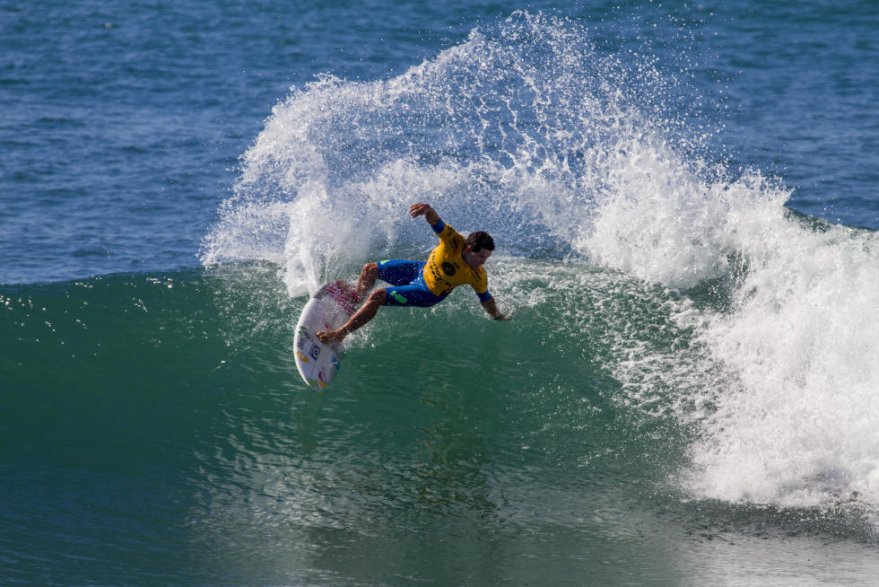 QF 1: Adriano de Souza (BRA) 15.46 def. Filipe Toledo (BRA) 15.27