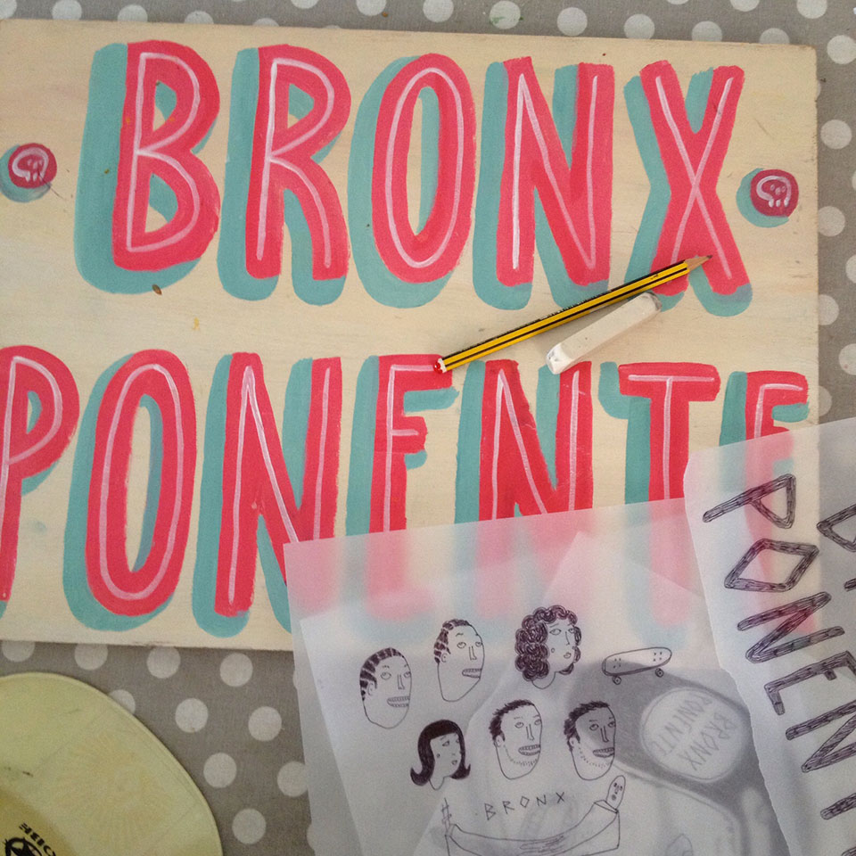 Bronx Ponente è uno pseudonimo che utilizzo dal 2009 come concetto artistico culturale, un nome che ha radici nel territorio e che guarda contemporaneamente all’America ispiratrice. Kline, Twombly, De Kuning, Mothorwell, Rotkho, Basquiat, Warhol sino ai contemporanei McGee, Baseman, Kilgallen sono i miei eroi, le mie Rock star, i miei idoli.