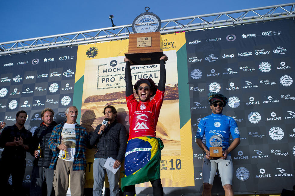 Al di là della cronaca della finale, che ha visto Toledo guadagnare il secondo perfect 10 dell’evento con due air massicci e altre transizioni, seguito dal 9.93 di Italo Ferreira, il Rip Curl Pro Portugal ha messo in luce come nelle file brasiliane ci siano più di un talento pronto per il titolo mondiale.