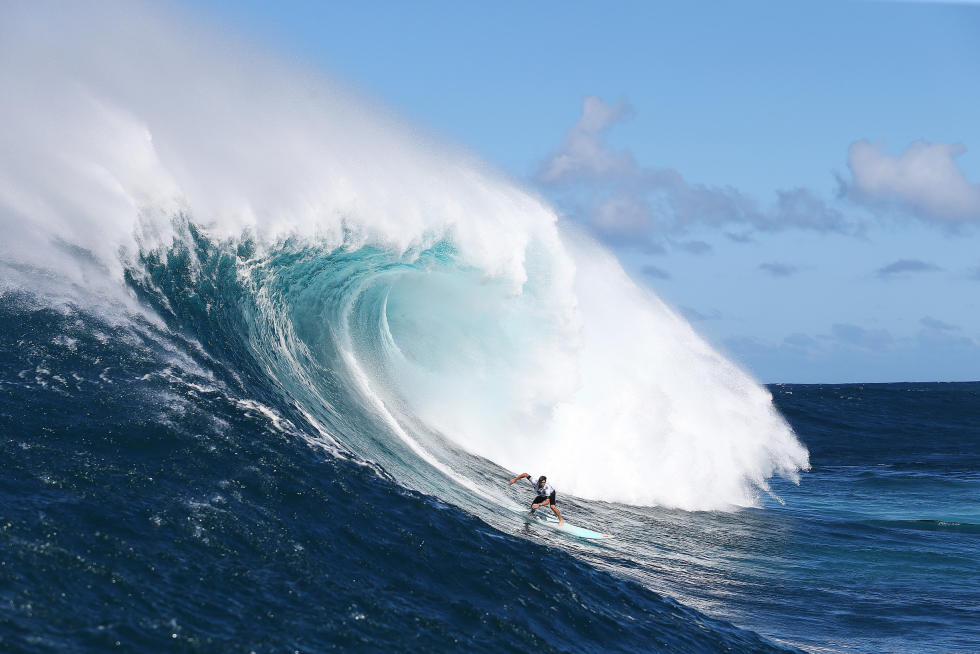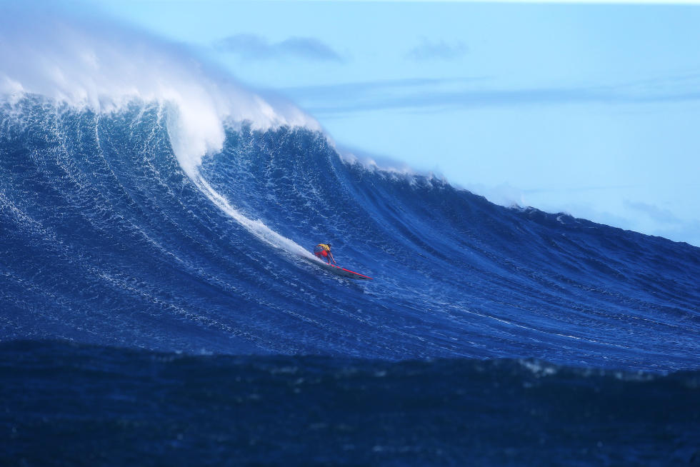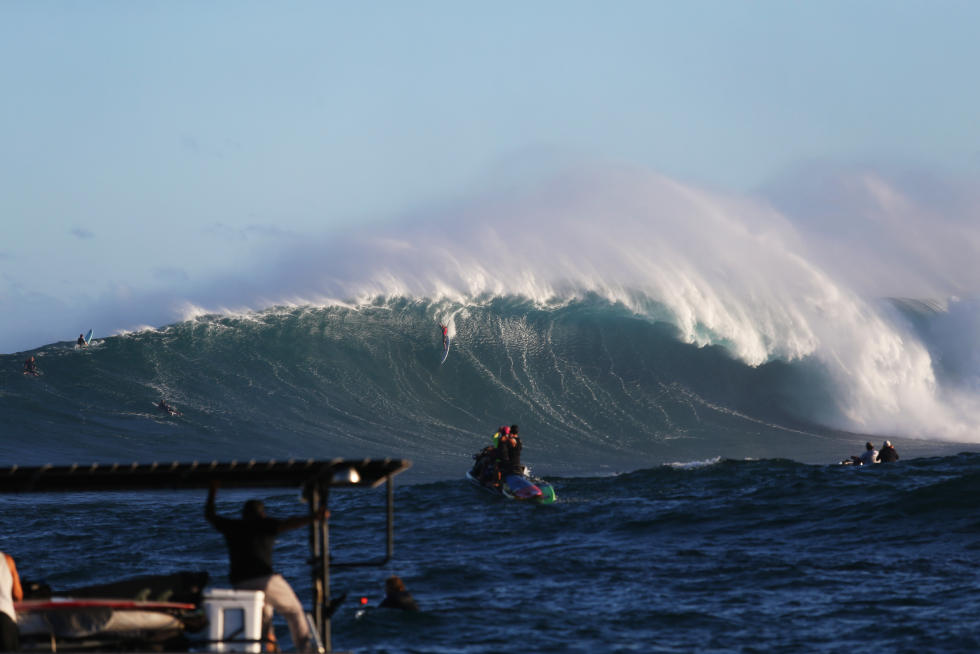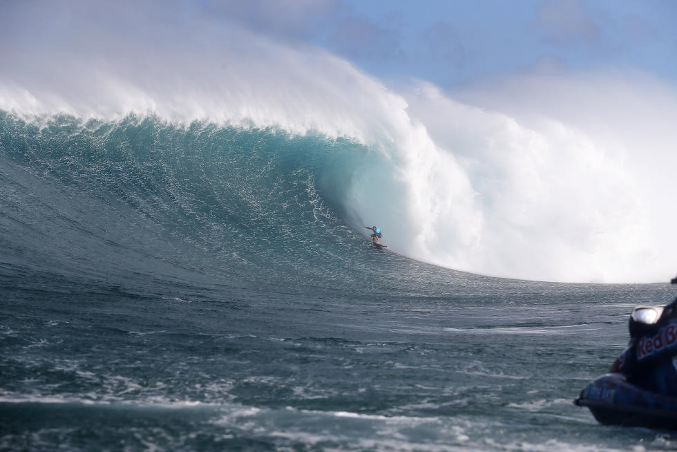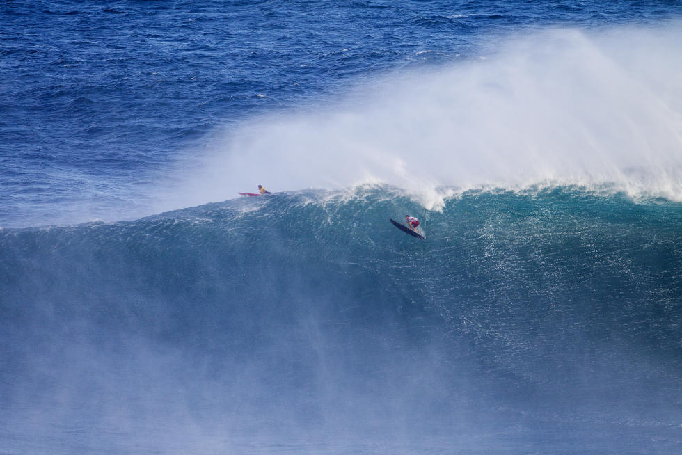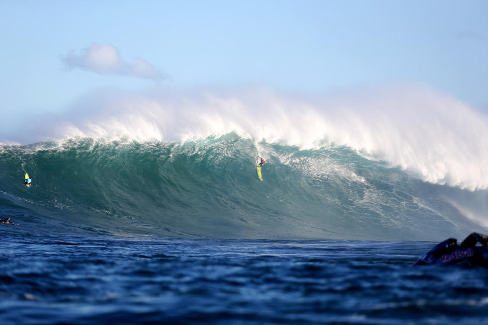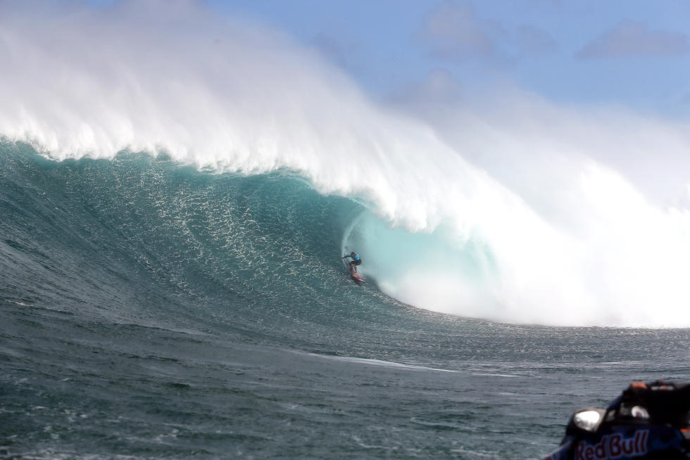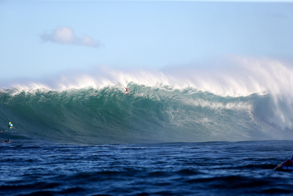 Per tutta la giornata, set di onde sui 40-50 piedi di faccia hanno permesso lo svolgimento di questa prima storica edizione, tra wipeout rovinosi e surfate memorabili, ma è stato il local di Maui a dimostrare l’impegno maggiore nel domare quei mostri liquidi.