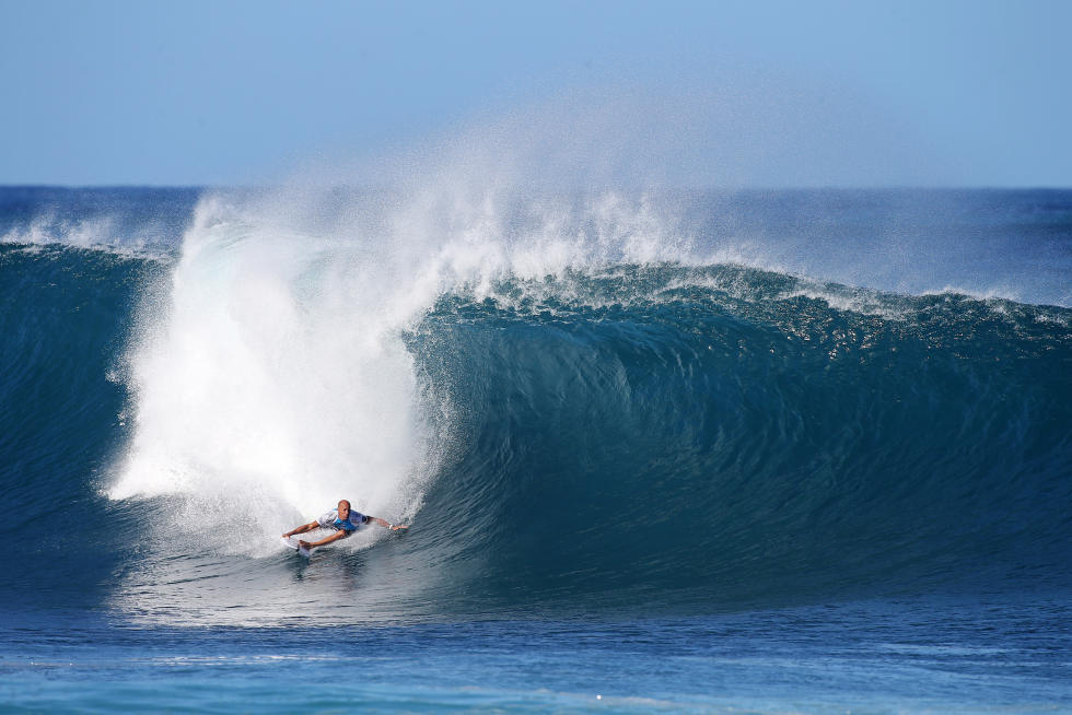 Heat 2: Kelly Slater (USA) 17.07 def. Keanu Asing (HAW) 9.77