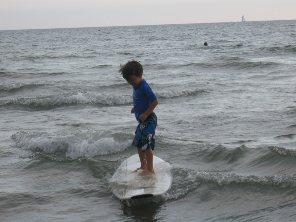 La prima volta che mi sono alzato in piedi su una tavola da surf avevo 4 anni e mezzo circa. Mi sono appassionato vedendo il mio amico Gianmatteo che faceva il bagnino e appena poteva scappava a prendere le onde