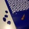 Per prima cosa e’ necessario recarsi in una tipografia o stamperia dove eseguono adesivi intagliati su misura con plotter, consegnate il file da cui ottenere la pellicola adesiva, dando le misure da voi scelte per coprire la tavola intera o una parte… dopo qualche giorno avrete pronto un mega stencil. Portatelo a casa e successivamente dovrete pazientemente togliere con un taglierino tutte le parti negative o positive in base al disegno che volete imprimere sulla tavola. (vedi immagine)